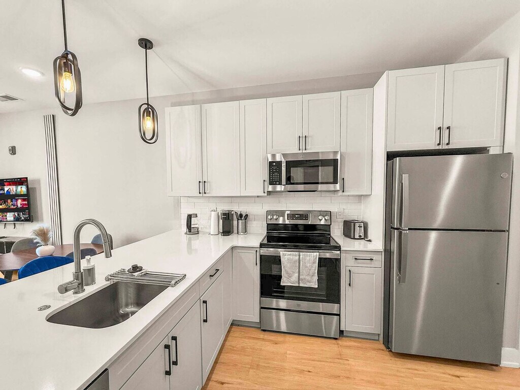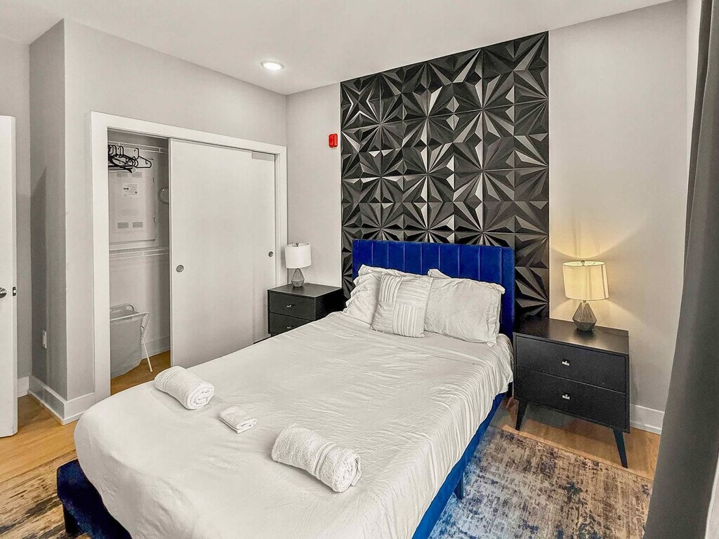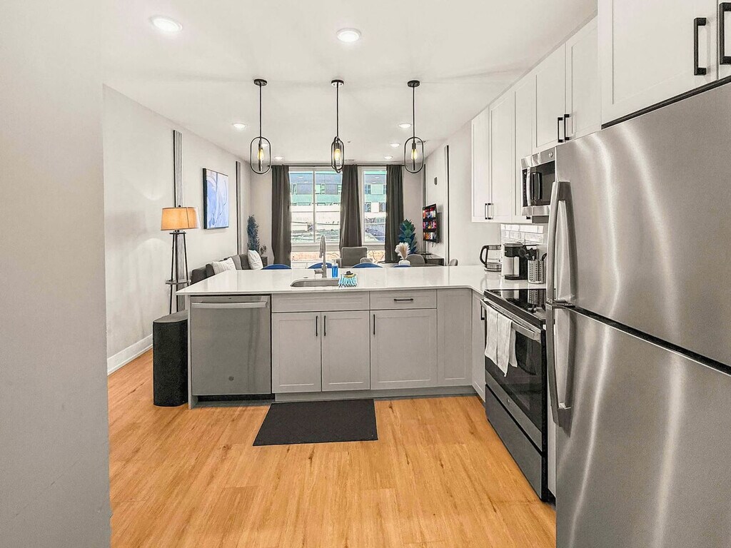 Experience the ultimate getaway in the lively and historic center of Philadelphia. Feel at home in this modern and chic apartment that combines style, comfort, and practicality. Step into a thoughtfully designed apartment where comfort meets convenience, creating the perfect setting for a relaxed and memorable stay. The fully equipped kitchen features stainless steel appliances including a refrigerator, oven, stove, microwave, and dishwasher. Both bathrooms showcase contemporary elegance with sleek lines and high-quality finishes, providing a serene and refreshing environment. Pets are allowed depending on size, please inquire beforehand. The pet cleaning fee is $25 per night for stays of 1 to 4 nights, $200 for stays of 5 to 29 nights, and $300 for stays of 30 or more nights. Located in the heart of vibrant Philadelphia, this apartment perfectly combines style, functionality, and convenience. Whether visiting for business or leisure, you’ll find a comfortable home base designed to make your stay truly unforgettable. If there is evidence of smoking indoors, a $500 fine will be imposed. Surveillance cameras are in the hallways for security, and a Minut device is in the unit for noise level. Shoes are not allowed in the house. Please do your dishes before leaving. Please ensure that the shower curtain is kept inside the shower basin while showering to prevent water from spilling onto the floor. [SI]