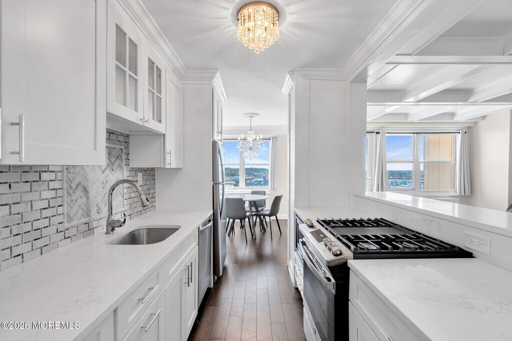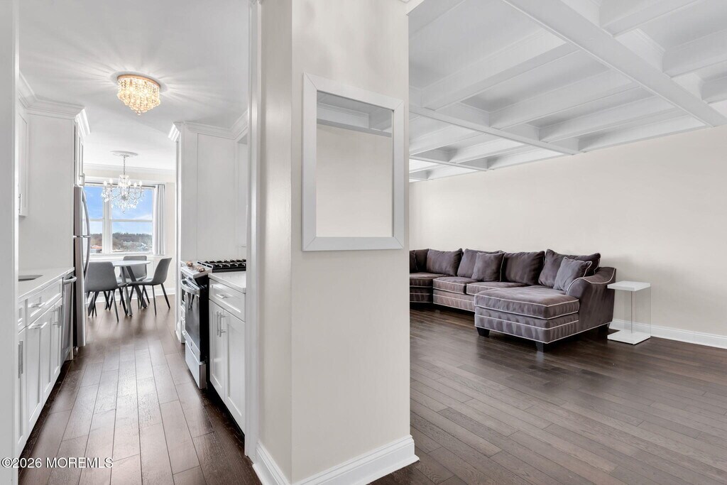 Light-filled,spacious,furnished one-bedroom/one- bath unit in a luxury high-rise in the heart of Red Bank. Stellar water views from all rooms and stunning sunsets from the private terrace. Features hardwood floors,open-concept living/dining room and kitchen island with seating,neutral bath,and abundant closet space. Full-service building with concierge,fitness center,pool,clubhouse,and dock. Assigned heated garage parking. All just minutes from fine dining,shopping,theaters,trains,Riverview Medical Center,and Ferry to NYC.