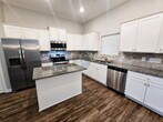 This lovely home, built in 2021 has four bedrooms and two and half baths. Situated in a quiet community with a decorator's touch and rocking chair porch perfect for those GA warm evenings. The kitchen has stainless-steel appliances and beautiful white cabinets. Flooring through the house on the main level. Very spacious and a lot of room for storage. The Primary/Master Suite is on the main floor! 3 great-sized bedrooms upstairs! Beautiful front porch for relaxing, back yard is fully fenced and gives you full privacy. 2 car garage. Ready for a new resident! House is located in the growing Adairsville area with shopping and dining nearby. Please call or email for more information today! To view additional properties, please see our website at email us at or call us at and one of our experienced leasing agents will help you find the perfect home. Monthly Rent: $2,100.00 Security Deposit: $2,100.00 Administrative Fee $250.00 Don’t miss your opportunity to make this beautiful home yours! After application approval: Holding fee required/ max 30 days (Equal one month's rent): $2,100.00 - This amount will be applied to the first month's rent on the day of taking possession - due 24-48 hours after application approval. Security deposit: $2,100.00 due on the day of taking possession All AriStar Property Management residents are enrolled in the Resident Benefits Package (RBP) for $55.00/month which includes liability insurance, credit building to help boost the resident's credit score with timely rent payments, up to $1M Identity Theft Protection, HVAC air filter delivery (for applicable properties), move-in concierge service making utility connection and home service setup a breeze during your move-in, our best-in-class resident rewards program, on-demand pest control, and much more! More details upon application open kitchen and a living room with a charming fireplace.