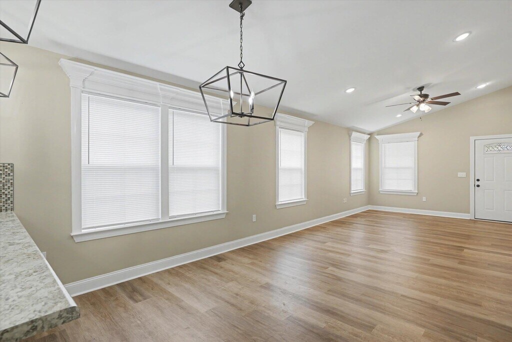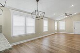 This house has lots of upgrades including LVP flooring,vaulted ceilings,step ceiling in the master with rope lighting,pediments over windows in all the main areas and so much more. The home has a split plan,inside laundry,so much storage with closets everywhere,a kitchen with a large bar,outdoor patio ready to move into. Yard service is included. Credit score of 650 is required.