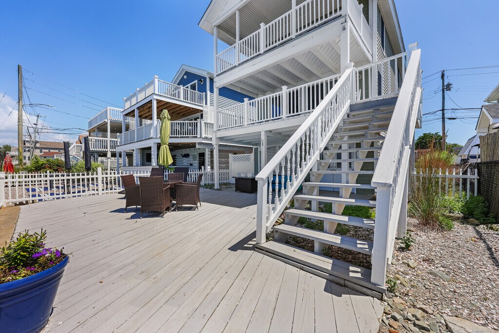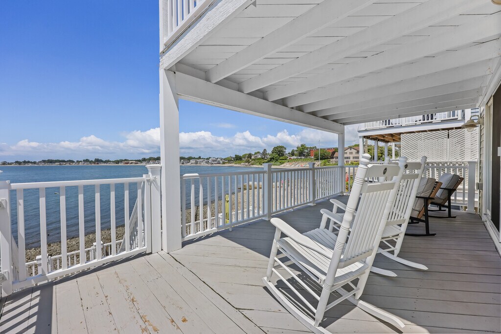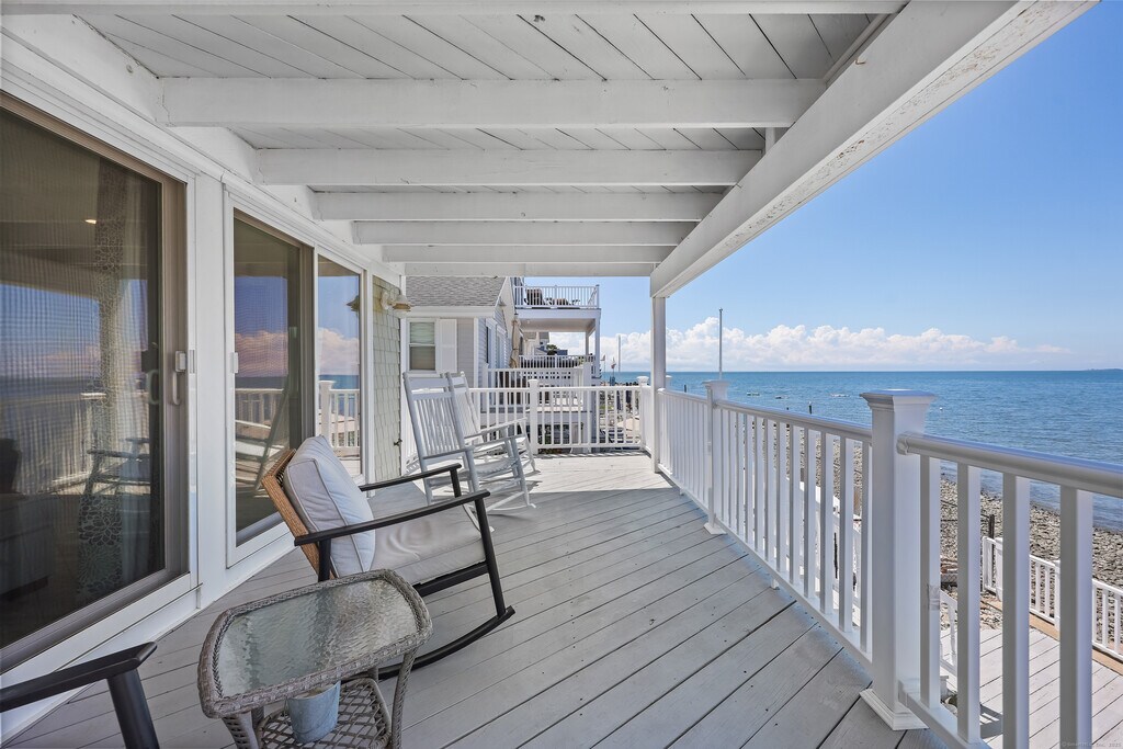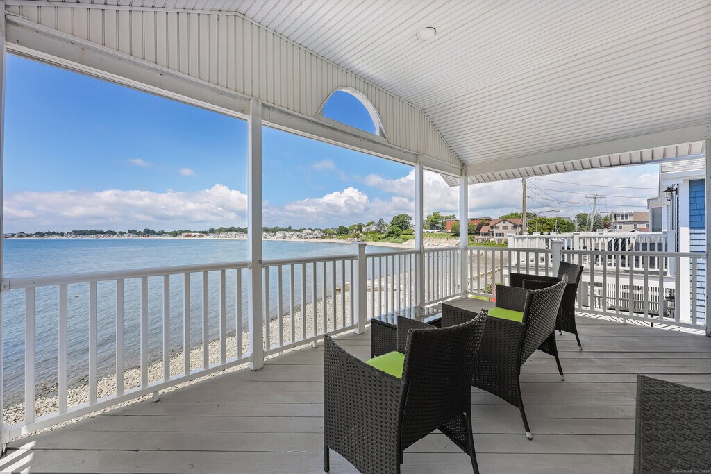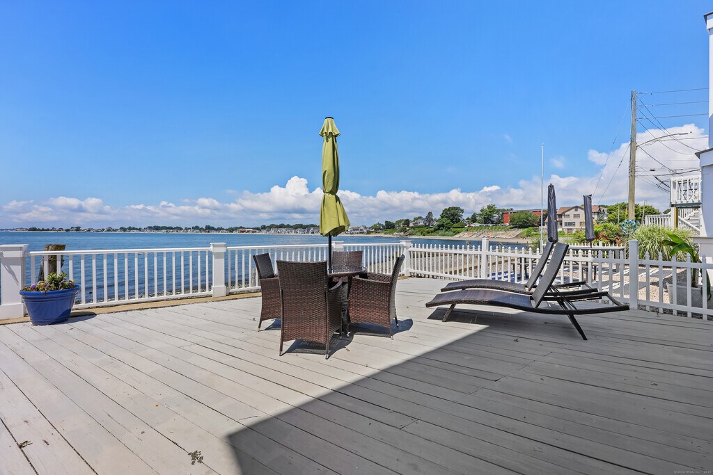 Call for Availability - Enjoy the best of coastal living in this fully furnished direct waterfront home in Milford's Point Beach community. The main level has a bright, open feel with a spacious living room, cozy fireplace, and sliders that lead out to a west-facing deck, perfect for sunsets. The kitchen has everything you need, including plenty of cabinet space, modern appliances, and a breakfast bar that opens to the dining area. Upstairs you'll find a peaceful primary bedroom with private balcony access and water views, along with two additional bedrooms featuring vaulted ceilings. There's also a lower-level patio for relaxing or entertaining and an oversized garage with plenty of extra space for storage. Available for year-round rental, just bring your suitcase and settle into this comfortable, well-kept beach home. MLS# 24116274