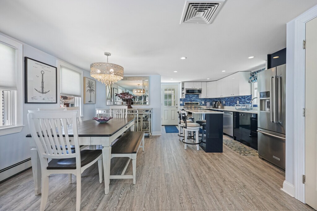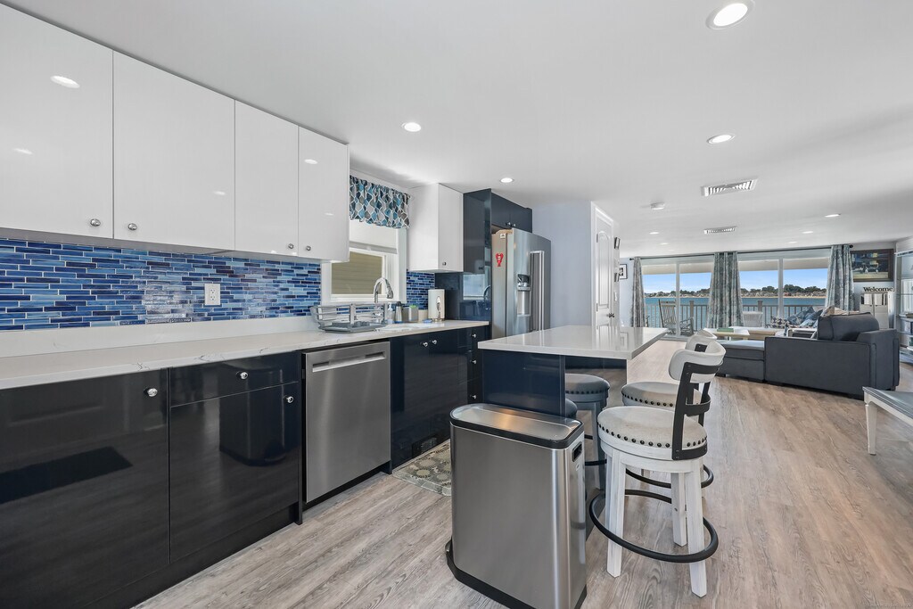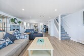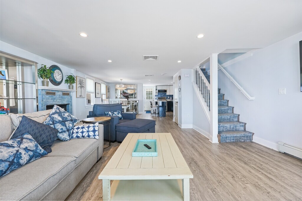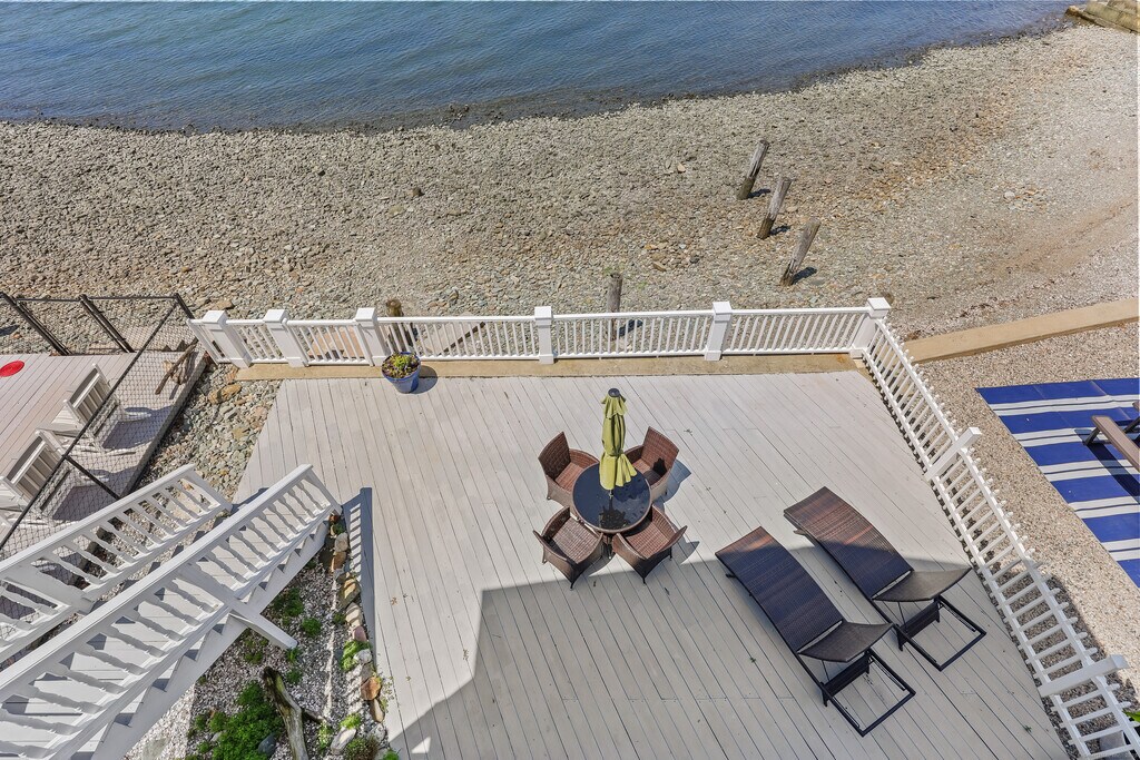 Call for Availability - Enjoy the best of coastal living in this fully furnished direct waterfront home in Milford's Point Beach community. The main level has a bright, open feel with a spacious living room, cozy fireplace, and sliders that lead out to a west-facing deck, perfect for sunsets. The kitchen has everything you need, including plenty of cabinet space, modern appliances, and a breakfast bar that opens to the dining area. Upstairs you'll find a peaceful primary bedroom with private balcony access and water views, along with two additional bedrooms featuring vaulted ceilings. There's also a lower-level patio for relaxing or entertaining and an oversized garage with plenty of extra space for storage. Available for year-round rental, just bring your suitcase and settle into this comfortable, well-kept beach home. MLS# 24116274