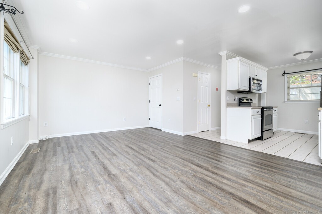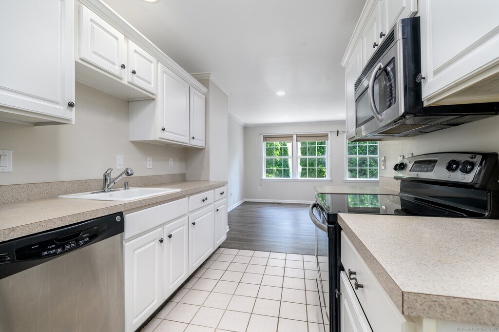 Call for Availability - Beautifully renovated 2BR, 1.5BA townhouse showcasing modern upgrades and thoughtful design throughout. This home features new hardwood floors, recessed lighting, and stunning oversized windows with custom treatments. The kitchen is equipped with white shaker cabinets and stainless steel appliances, creating a clean and timeless look. Upstairs, you'll find two spacious bedrooms, including a primary suite with vaulted ceilings and a skylight that fills the room with natural light. Additional highlights include attic storage and a large 2-car garage with extra space for storage. Conveniently located just minutes to I-95, Metro North, SONO, restaurants, shops, and more-this is a commuter's dream! MLS# 24133583