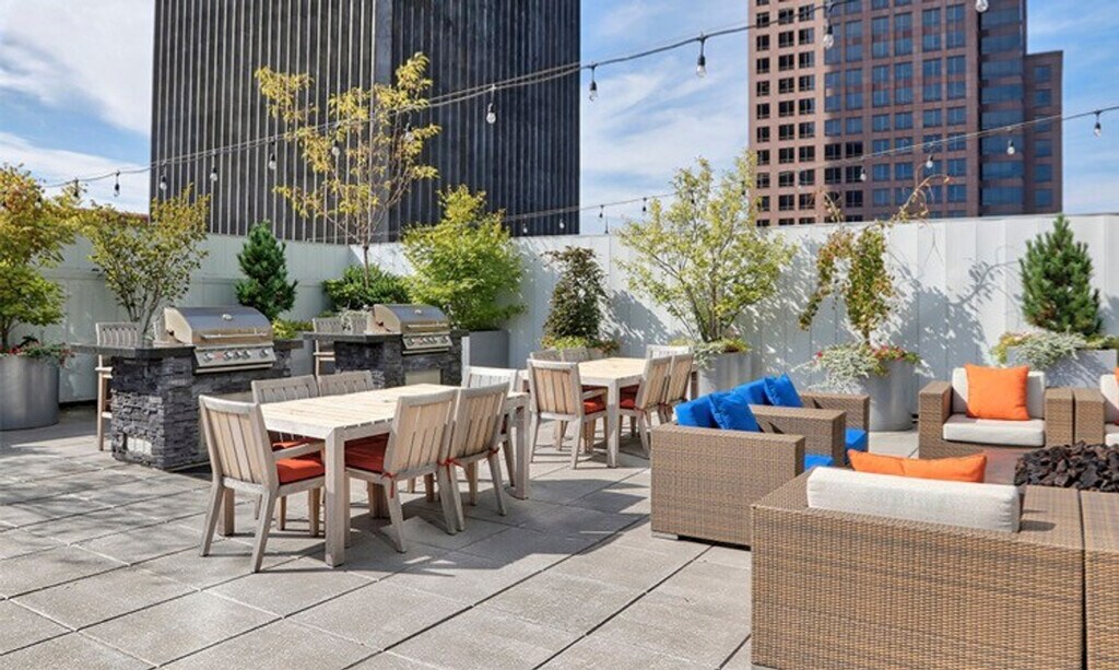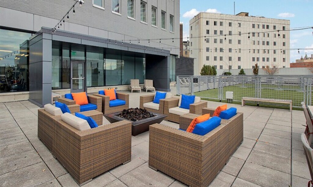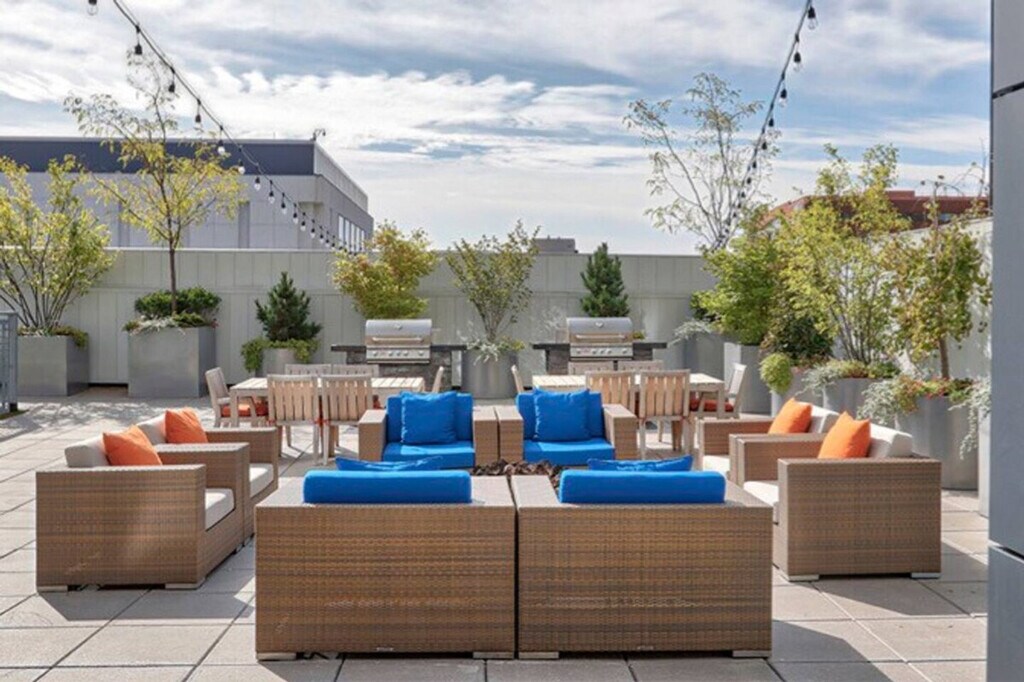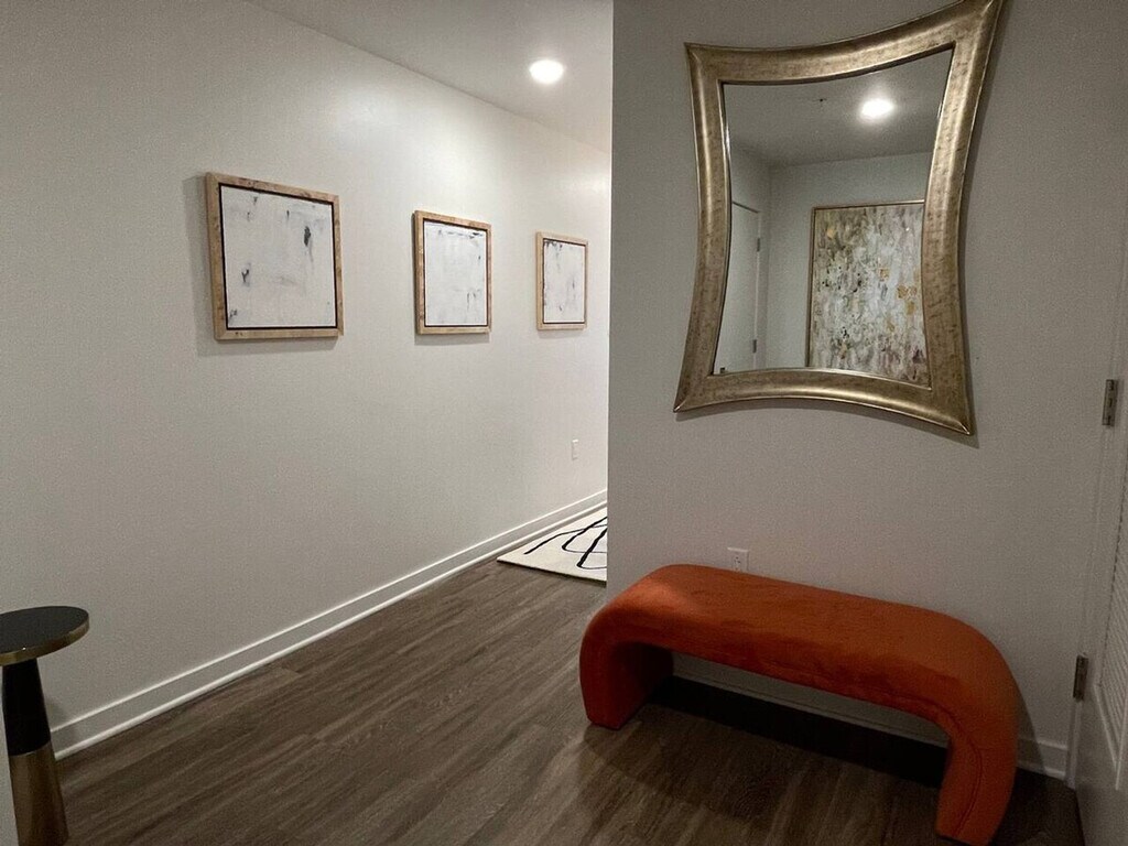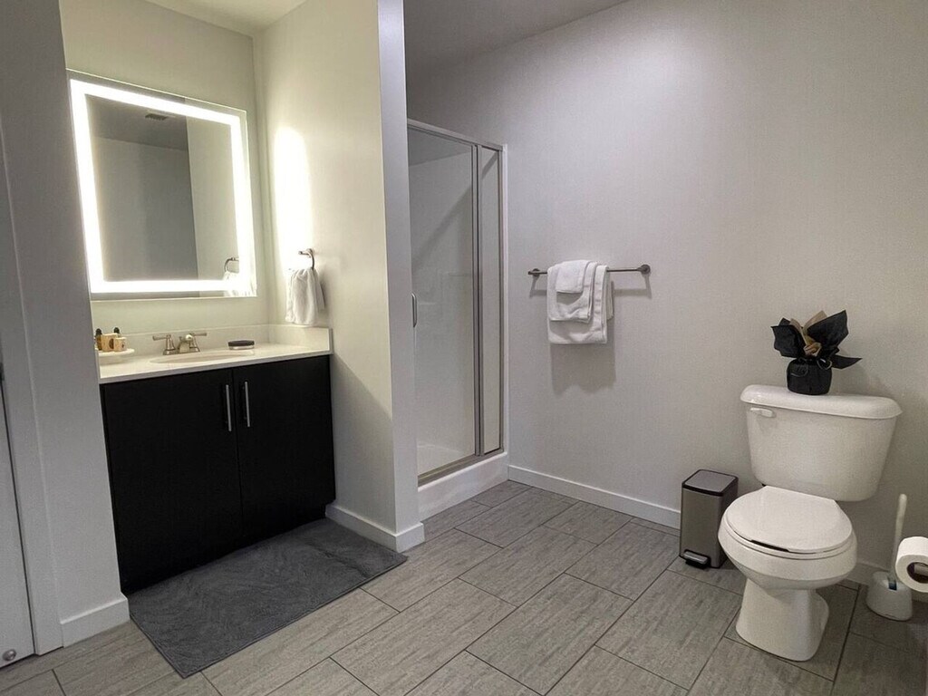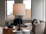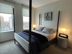 Kick back and relax in this upscale and stylish one-bedroom corner unit on the 8th floor of Tower 280 in downtown Rochester. This apartment offers two walls of punctuated windows, providing extraordinary light and unbelievable views of the immediate area. Located in the heart of downtown, it is the most popular address in the city, furnished with high-end mid-century furniture and original artwork. Welcome to a luxurious one-bedroom corner apartment in downtown Rochester. This elegant living space offers a sophisticated contemporary atmosphere, modern amenities, and stunning city views. The open-concept living area seamlessly combines the living room, dining area, and kitchen, allowing natural light to flood the entire space. The living room is tastefully furnished with an authentic mid-century serpentine sofa, gorgeous boucle chairs, and hand-crafted burl wood accent pieces. It also features a 65" HD television and original artwork. The sleek and modern kitchen features top-of-the-line stainless steel appliances, including a refrigerator, oven, microwave, and dishwasher. The kitchen has ample cabinet space and is fully equipped to prepare a simple or extravagant dinner. The bedroom is a tranquil sanctuary with a comfortable queen-size bed, premium bedding, contemporary four-poster bed furnishing, two bedside tables with stylish lighting, a spacious closet, and large windows offering breathtaking city views. The bathroom is modern and spacious with a vanity with ample storage and a walk-in glass-enclosed shower. The apartment also includes a separate laundry closet with a combo washer-dryer unit for your convenience. Residents of this upscale building enjoy access to various amenities, including a state-of-the-art, well-equipped fitness center, an outdoor terrace with lounge and dining areas and a barbecue grill. On the entrance level of Tower 280, you will find restaurants, a salon and a concierge desk. Located in the heart of downtown Rochester, you will be surrounded by abundant entertainment, dining, and shopping options. The vibrant city streets are just steps away, offering a dynamic and urban lifestyle at your doorstep. Guests have access to the entire unit and all common areas in the building. [SI]
