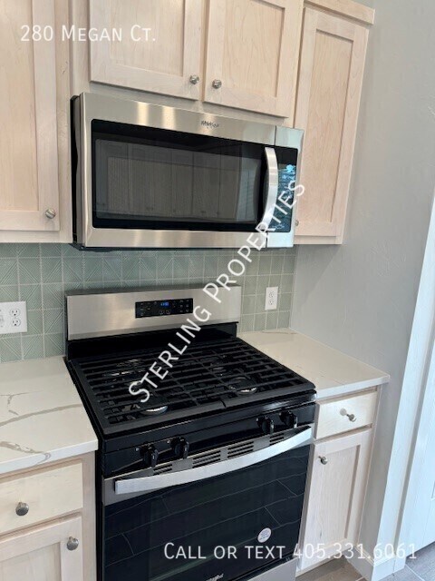 BRAND NEW ENERGY EFFICIENT CONSTRUCTION in the Oasis Ranch community in Blanchard. Open floor design with wood look tile throughout the main living areas and carpet in the 3 bedrooms. Master suite to the back of the home with separate garden tub, tile shower, double vanity and large walk in closet. The utility room is adjacent to the master with a window for natural lighting and a folding table. The secondary bedrooms are to the front and side of the home with a mud bench in the landing off the garage entry. The kitchen features a stainless steel gas range with built in microwave, pantry and island for prep space. The sink has a window out to the backyard with covered patio and fully fenced - pet friendly with additional refundable pet deposit. 2 Bathrooms 2 Car Garage 3 Bedrooms Central Heat & Air Covered Patio Gas Stove Kitchen Island Open Plan Washer & Dryer Hook Ups
