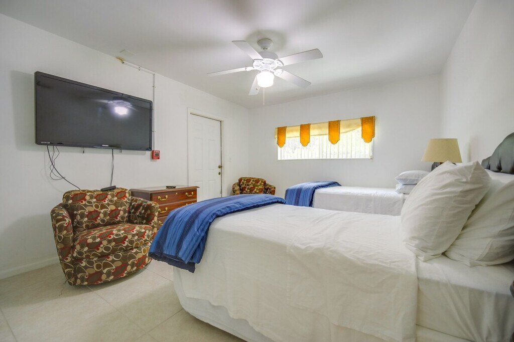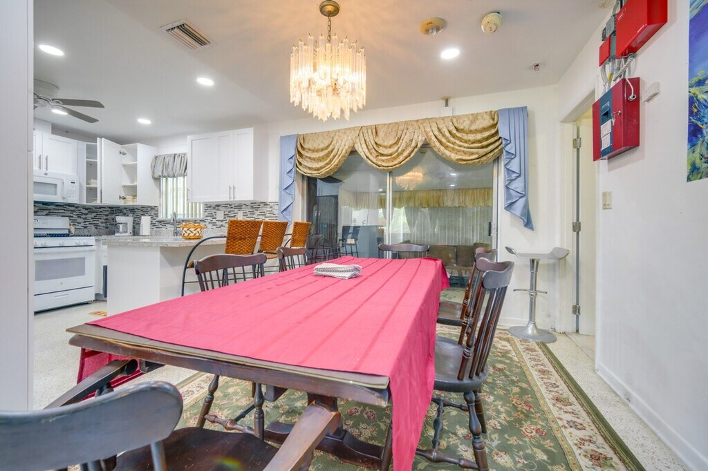 Experience the tranquility of Miami in this welcoming 3-bedroom, 3-bathroom vacation rental home. Spanning 1,902 sq ft, this single-story residence offers peaceful water views and is conveniently located just 3 miles from Calder Casino. Enjoy the private outdoor space with al fresco dining options, and take advantage of the in-unit laundry and private parking for up to 4 vehicles. Feel at home with multiple TVs, board games, and books for entertainment. The kitchen is fully equipped with a stove, oven, refrigerator, microwave, and dishwasher, along with a drip coffee maker, kettle, sandwich press, and toaster. Enjoy meals at the dining table or breakfast bar, and start your day with complimentary coffee, fruits, and nuts. There are no pets allowed and no events, parties, or large gatherings permitted. Guests must be at least 25 years old to book, and additional fees and taxes may apply. A photo ID may be required upon check-in. Located near Rolling Oaks Park, this home offers easy access to leisurely strolls or picnics. Savor the local cuisine at nearby restaurants or explore the vibrant arts scene and shops in Downtown Miami. This home is non-smoking and offers step-free entry, with only one step required to enter the sunroom. Guests will have access to the entire property via a lockbox. Stay connected with free WiFi throughout the home, making it easy to work remotely if needed. [SI]