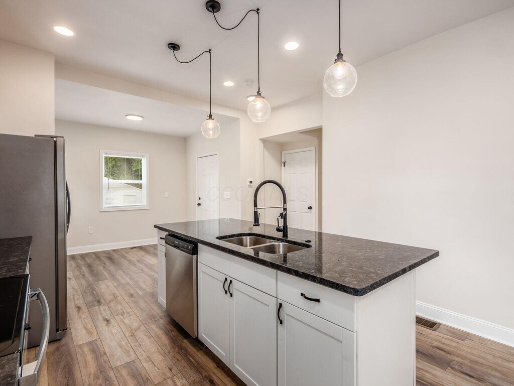 Full Refreshed 3 Bedroom Home in Franklinton! 2 Car Garage! This 3 bedroom,1.5 bath Franklinton single family home has been fully remodeled and is ready for you! As you walk inside,to your right you will find a brand new half bathroom and first floor laundry hookups. To your left is the living room,dining area,and a beautiful kitchen with a large island,pendant lighting,subway tile backsplash,white shaker cabinets,granite counters,and stainless steel appliances. Upstairs features three carpeted bedrooms and a full bath with a double vanity and a shower/tub combo with a tiled surround. Outside features a fully fenced yard with a privacy fence and a detached two car garage. This home has central air conditioning and additional storage space is available in the unfinished basement.