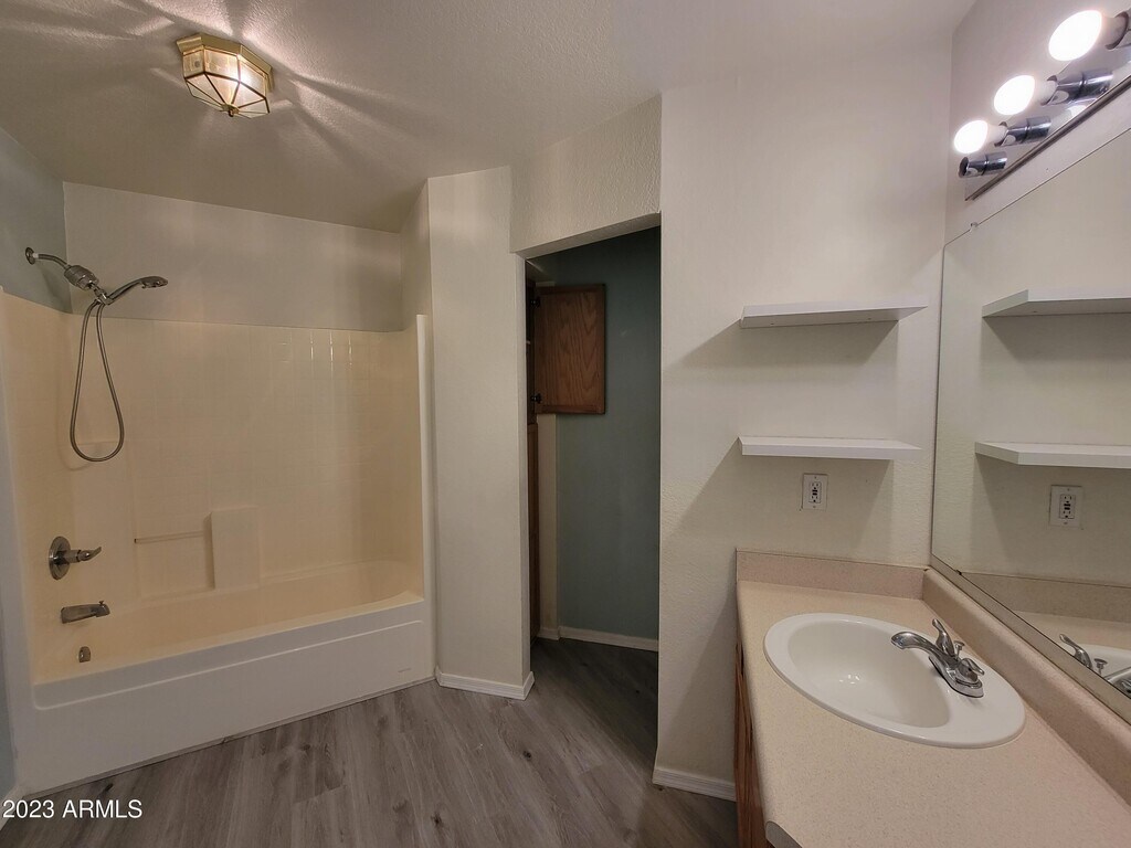 Vacant and move-in ready! Newly renovated (2023) with wood-like plank floor downstairs and new carpet upstairs. Spacious townhome with two bedrooms upstairs and one bedroom downstairs with 2 full baths. Community has pool and is next to city park. Refrigerator (2023) and washer/dryer included. Two covered parking spots in front of the unit.