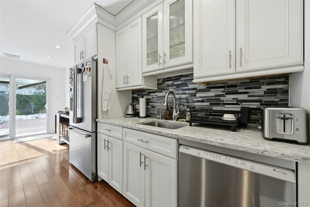 Smithtown School District - Welcome to this beautifully renovated Split Ranch offering 4 bedrooms and 1.5 baths,featuring sun-filled principal rooms,a spacious open floor plan,gleaming hardwood floors,central air,recessed LED lighting,newer roof,and newer windows throughout. The first floor boasts a large entry foyer with two oversized coat closets,a formal dining room,living room,den,an updated eat-in kitchen complete with stainless steel appliances,granite countertops,modern cabinetry,and sliding glass doors leading the backyard,a newly renovated powder room. Just three steps up from the foyer,the second level features 4 bedrooms with ample closet space,including 2 bedrooms with walk-in closets,a beautifully renovated full bath with double vanity and large walk-in shower,and a large hallway linen closet for additional storage. The exterior has been completely updated and showcases new stone and vinyl siding,a new paver patio in the backyard,a new paver front walkway,and a brand-new expanded driveway offering ample parking. The fully fenced,manicured property provides a private backyard oasis—perfect for outdoor entertaining or relaxation. Additional highlights include a partial basement with washer/dryer,utilities,and storage space,as well as an attached one-car garage with partial attic for additional storage. Based on information submitted to the MLS GRID as of [see last changed date above]. All data is obtained from various sources and may not have been verified by broker or MLS GRID. Supplied Open House Information is subject to change without notice. All information should be independently reviewed and verified for accuracy. Properties may or may not be listed by the office/agent presenting the information. Some IDX listings have been excluded from this website. Prices displayed on all Sold listings are the Last Known Listing Price and may not be the actual selling price.