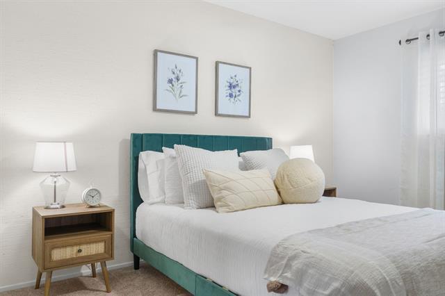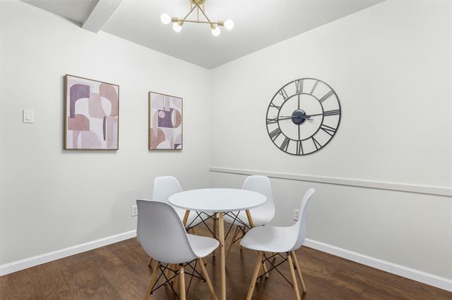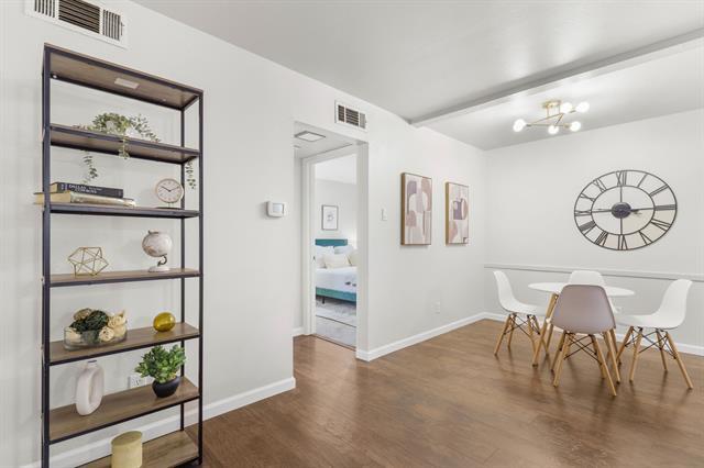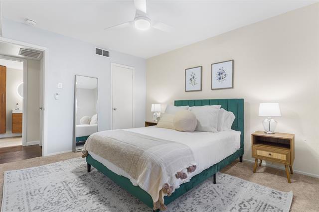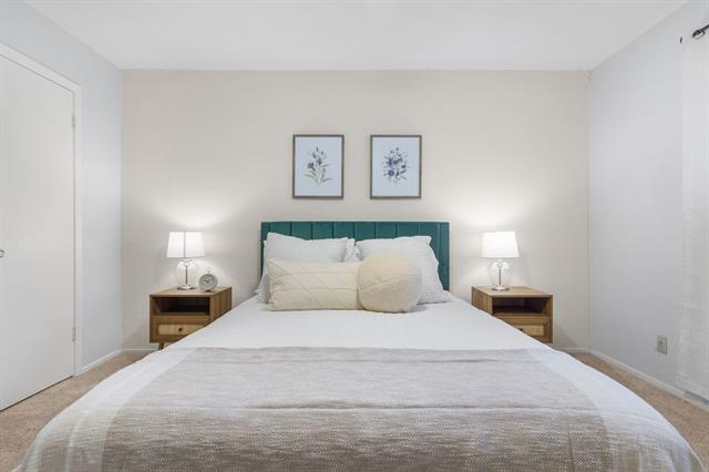 Fully furnished one-bedroom condo located in Farmers Branch has been tastefully updated. Primary bedroom features dual walk-in closets, and the balcony boasts beautiful views of the sparkling community pool. This property is conveniently located with easy access to LBJ, Dallas Tollway, I35, and 635. It is less than a mile away from the new JOYA Oran Good (glow-in-the-dark) Park! Assigned covered parking is included with this unit. The HOA covers water, sewer, trash, exterior structural maintenance, ground facilities, clubhouse, parking, and pool maintenance. Pets are considered on a case-by-case basis, with a maximum of one pet allowed and a weight limit of 35lbs.