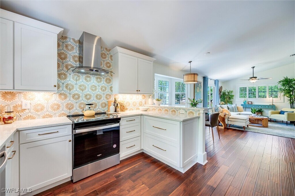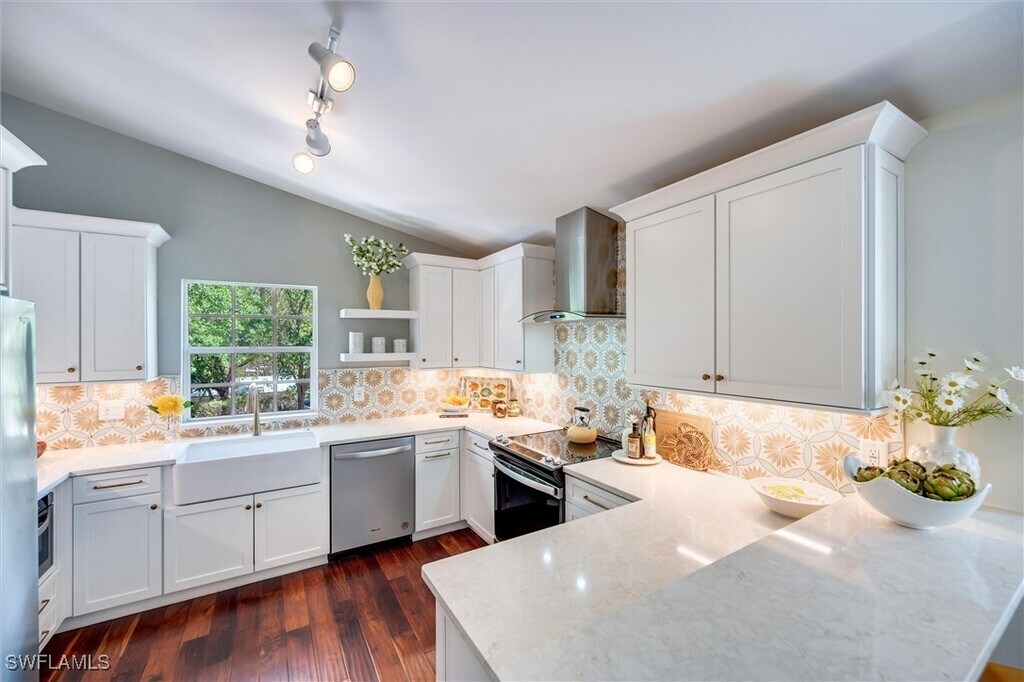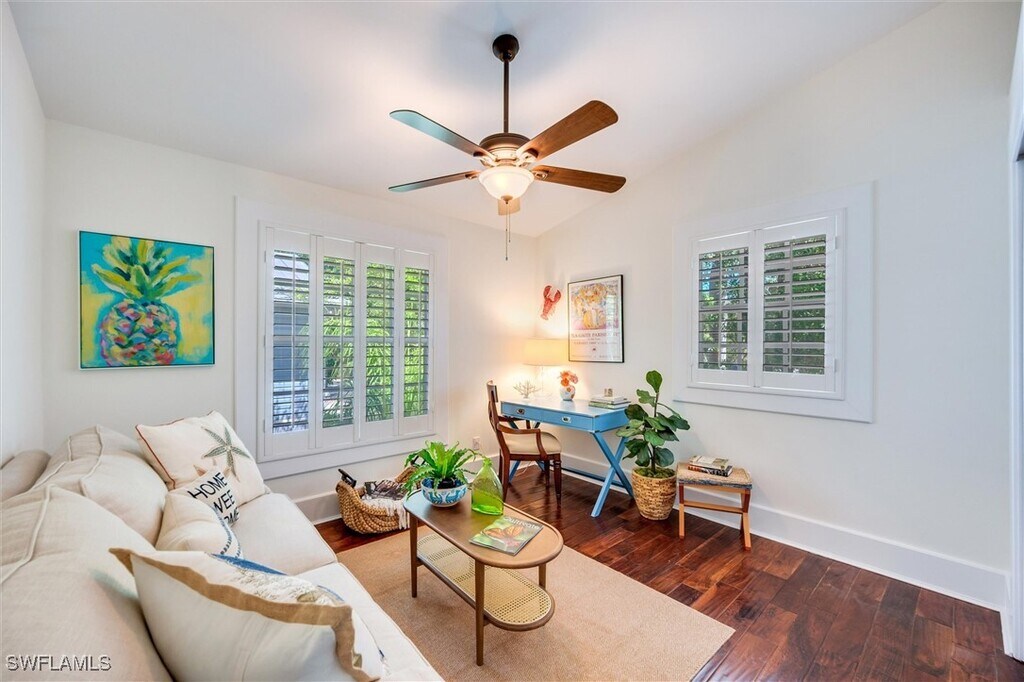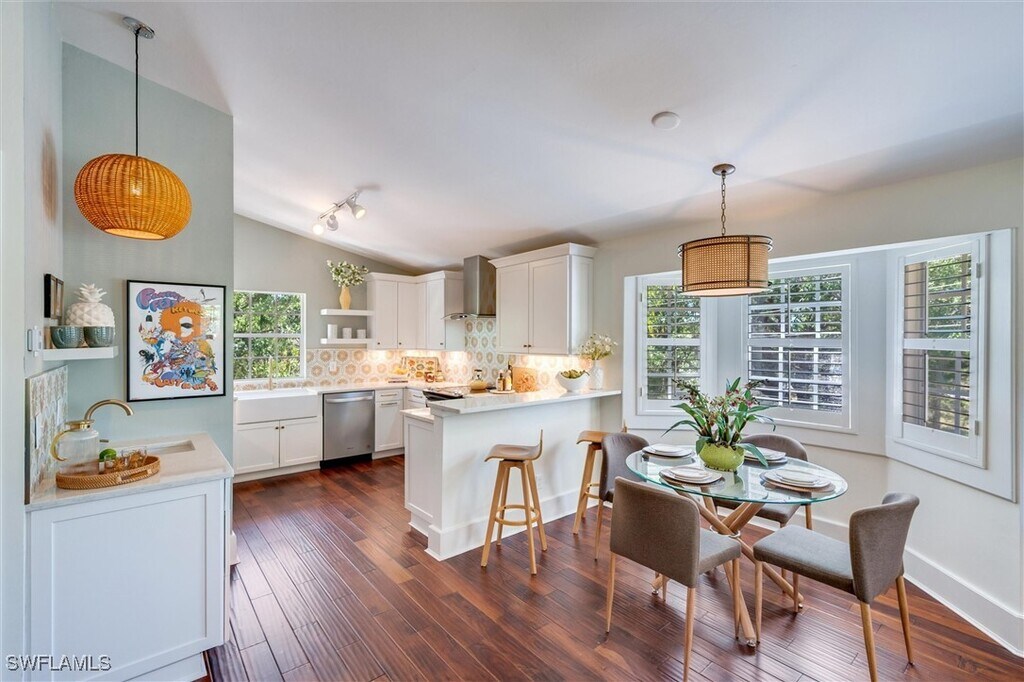 Annual rental available! This bright and cheerful 3-bedroom,2-bathroom furnished Key West style bungalow exudes coastal charm and sits on a quiet,private street near Naples Bay in the highly sought-after Bayshore Arts District. The renovated kitchen features custom cabinetry,quartz countertops,a prep-sink area,decorative backsplash,and stainless steel appliances. Upstairs boasts vaulted ceilings and polished solid teak hardwood floors. Enjoy brand-new bathrooms,including a main-level primary suite with a spa-like shower and freestanding tub. Freshly painted inside and out,the home is filled with natural light from east and west exposures and is surrounded by lush landscaping. HOA fees cover professional management,landscaping,irrigation,tree trimming,sidewalks,and road maintenance. Additional amenities include a one-car garage plus two assigned guest parking spaces. Just under 2 miles to Naples’ iconic 5th Avenue and nearby sugar-white beaches. Bike or walk to Celebration Food Truck Park,Ankrolab Brewery,Starbucks,Naples Botanical Garden,Bayview Park,East Naples Community Park,US Pickleball Championship courts,and Sugden Park.