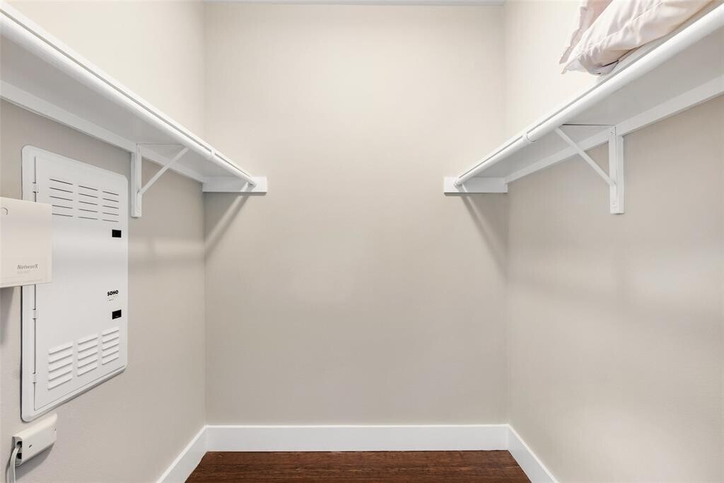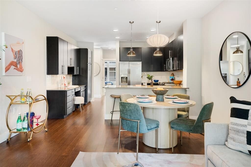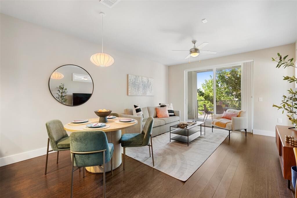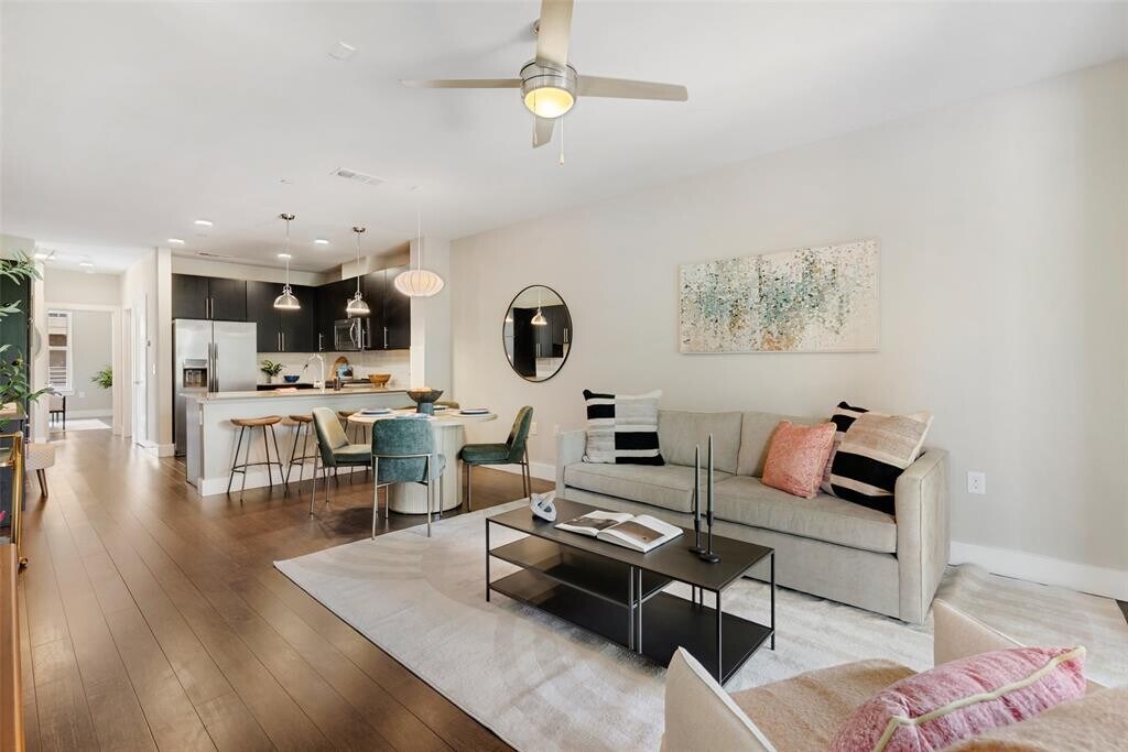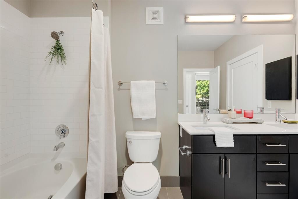 Discover modern South Austin living at The Denizen in this end-unit condo. Offered for the first time and carefully maintained by its original owner, the home lives much larger than a typical 1-bedroom thanks to a versatile den, perfect for a home office, guest space, or studio. Natural light streams in from windows on three sides, highlighting the open layout and hardwood floors throughout (no carpet). The kitchen is modern and functional with gray quartz counters, stainless steel appliances, ample storage, and a built-in desk area. The primary suite includes hardwood floors and a generous walk-in closet. Its private bath features a double vanity with white quartz counters and in-unit laundry. Freshly painted throughout, the condo also offers a private patio with pool and downtown views, an outside storage closet, and one reserved parking space. Community amenities include a sparkling pool, clubhouse, two dog parks, outdoor kitchen with BBQs, bike storage, and an amphitheater, plus 3.5 acres of green space to enjoy. On the north end of the community, the South Austin Community Park adds even more with open fields, tennis courts, pickleball courts, trails, and more. Prime 78704 location means you’re minutes from South Congress, South Lamar, and Downtown, with local favorites like Summer Moon Coffee, Elizabeth St. Cafe, Polvo’s, and Bouldin Creek Cafe nearby. Zilker Park and the airport are both just a short drive away. This home combines flexible living with lock-and-leave ease and access to Austin’s vibrant culture and lifestyle. STR not allowed.