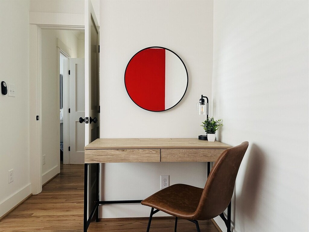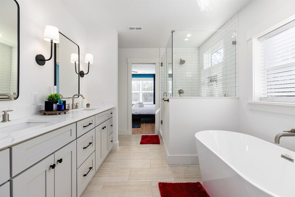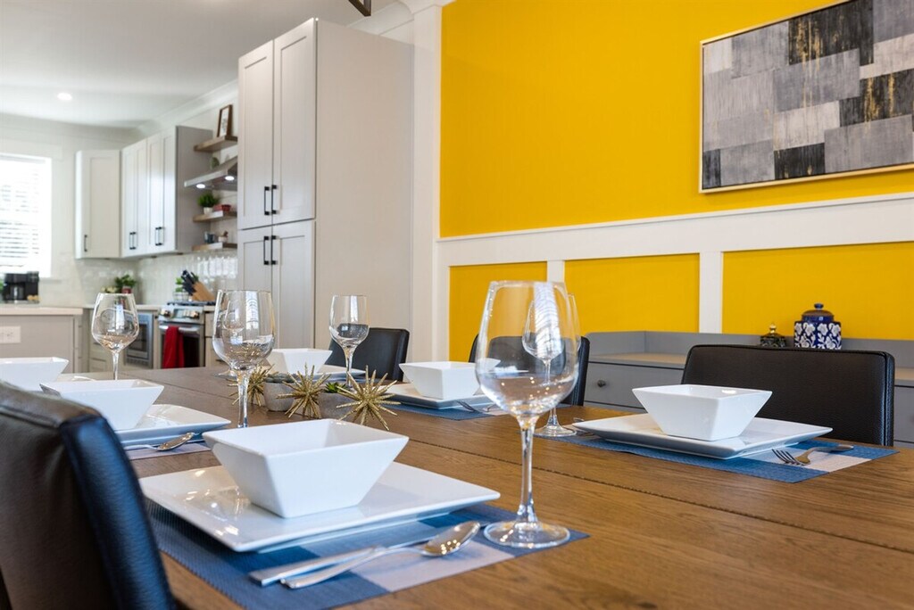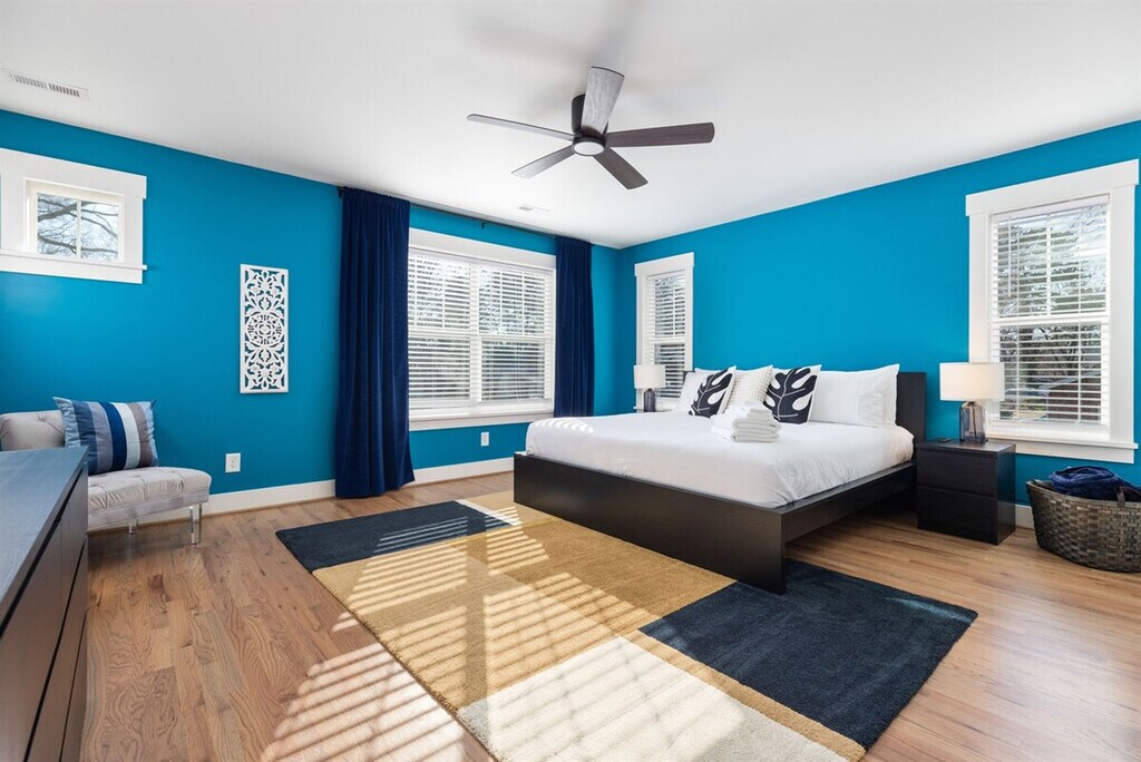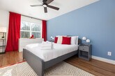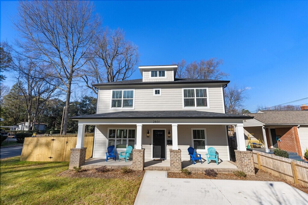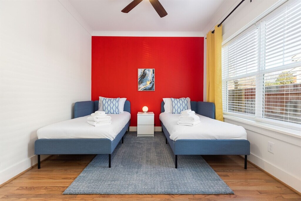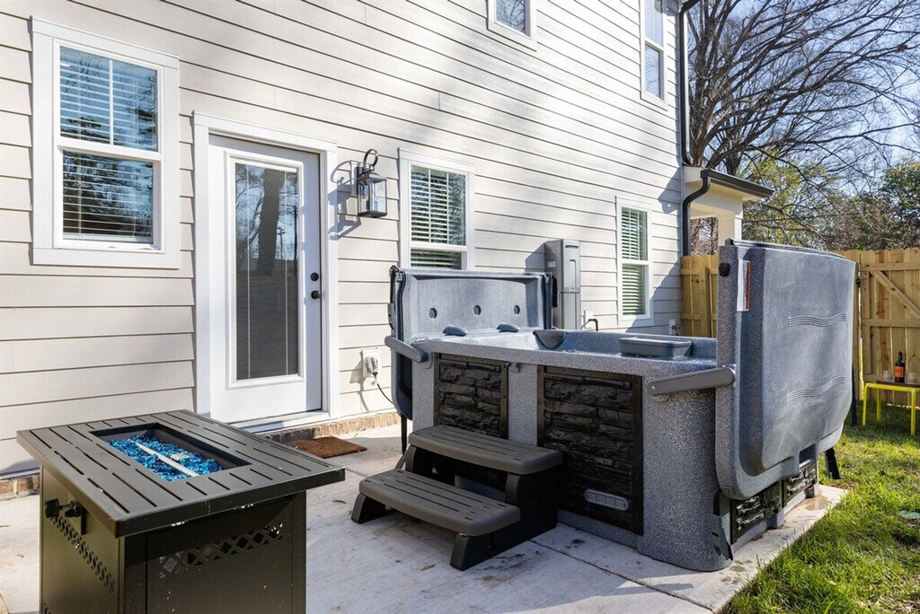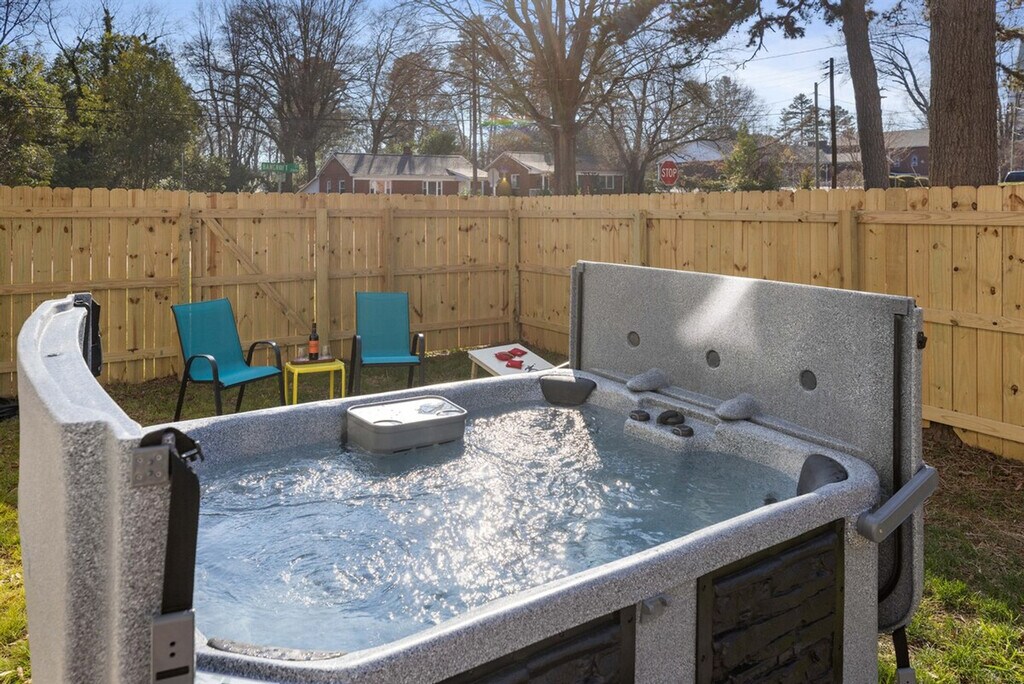 Feel at home in this new construction 4-bedroom, 3-bathroom home in Graham Heights, perfect for group getaways. This home features a chef’s kitchen with a gas range and stainless steel appliances, a private hot tub, a fire pit with seating, Smart TVs, an open layout with modern finishes, blackout curtains and fans in every bedroom, a spacious yard, a covered porch, fast Wi-Fi, central AC, and an in-unit washer and dryer. The kitchen is fully equipped and includes complimentary coffee and tea. This home is dog-friendly with a pet fee of $100 and agreement to pet policy. Driveway parking is available for 2 vehicles, plus there is free street parking. Located on a quiet corner lot in Charlotte’s Graham Heights, this home is just minutes from Camp North End, NoDa, and Uptown Charlotte. Graham Heights is a tree-lined, residential neighborhood just 2 miles from Uptown Charlotte, positioned at the edge of Tryon Hills and Camp North End. You’ll be minutes from Camp North End (3 min), NoDa Arts District (5 min), Uptown Charlotte (7 min), Optimist Hall (6 min), Queen’s University (12 min), and Charlotte Douglas International Airport (CLT) (16 min). No smoking or parties are allowed. Excessive noise that disturbs the neighbors will not be tolerated. Quiet hours are from 10pm to 8am. Pets must be registered, and failure to do so will result in a $200 unauthorized pet fee. There is a train track about 8 blocks away, so you may occasionally hear the sound of trains as they pass. Includes a dedicated workspace in one of the bedrooms. The layout is as follows: on the first floor there is a living room with a sectional and electric fireplace, an open dining room (seats 6) and kitchen island (seats 2), a half bath, and one bedroom with two twin beds and a dedicated workspace. The second floor includes the primary bedroom with a king-size bed, en-suite bath with soaking tub and walk-in shower, and walk-in closet, one bedroom with a queen bed, one bedroom with two twin beds, a shared bathroom with a tub/shower combo, and a laundry room. The outdoor space includes a covered front porch with Adirondack chairs and a fenced-in side yard with a 4-person hot tub, gas fire pit, and outdoor seating. [SI]