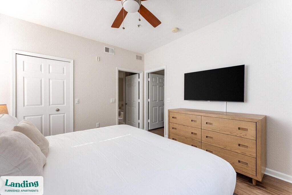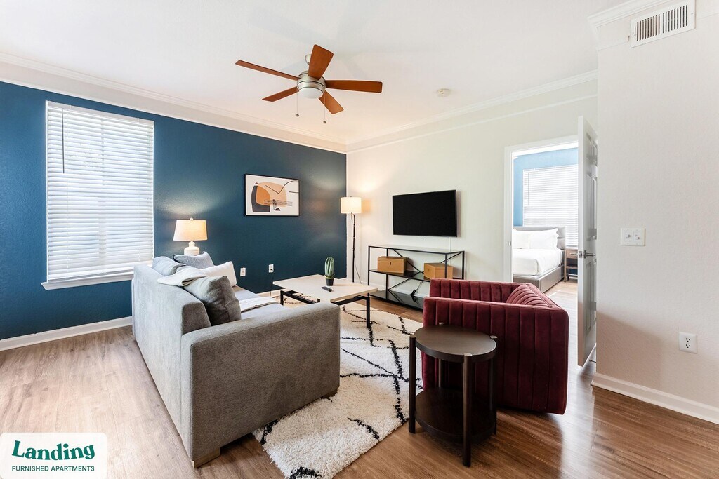 Landing offers flexible lease terms from weeks to months. Please always visit our website or contact us for the latest pricing & availability. Stay longer, save more: 6-Month Minimum base rent: starts at $2610/mo 12-Month Minimum base rent: starts at $2410/mo Landing offers flexible leases across a network of over 35,000 fully-furnished apartments throughout 375+ cities so you can rent on your terms, practically anywhere, and avoid the hassle of paying deposits or application fees. Visit to learn about all the benefits of a Landing membership, see our competitive up-to-date pricing, explore available apartments, take virtual tours, and make reservations online without jumping through traditional rental hoops. Landing's apartments at Estates at Park Avenue are designed for comfortable, easy living, with the ability to stay as long as you like. Experience living with Landing Every apartment is outfitted with all the modern essentials including: custom-designed furnishings, a fully-equipped kitchen with deluxe stainless steel appliances, a gourmet coffee maker, premium linens, Smart TVs, and incredibly fast, reliable internet for working from home. When you live with Landing, you'll enjoy a hassle-free experience with the added benefit of 24/7 access to our dedicated member experience team. Some of the nitty-gritty: a background check and proof of income are required; we're completely smoke-free; bundled utility packages and pricing vary based on length of stay; pet-friendly options available; listed price reflects a 12-month minimum stay.
