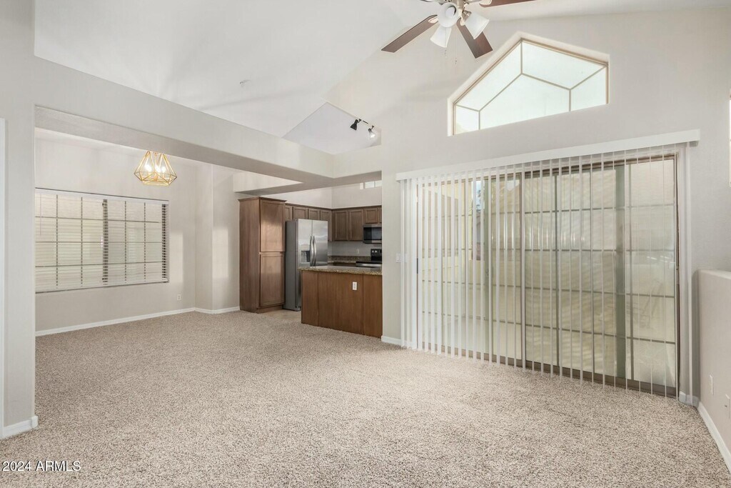 Fantastic rental opportunity in the highly desirable Pyramids at Palm Valley! This inviting 2-bedroom,2-bath townhome features a bright,open living space with vaulted ceilings,a calming color palette,and clerestory windows that fill the home with natural light. The kitchen is designed for both style and function,offering granite countertops,warm wood cabinetry with crown molding,stainless steel appliances,track lighting,and a peninsula breakfast barperfect for casual dining. The spacious primary bedroom includes a private bath and walk-in closet,while the private balcony offers a relaxing spot to enjoy the surrounding views. Residents enjoy access to community amenities including a pool and tennis court. Conveniently located near golf courses,parks,shopping,and dining.