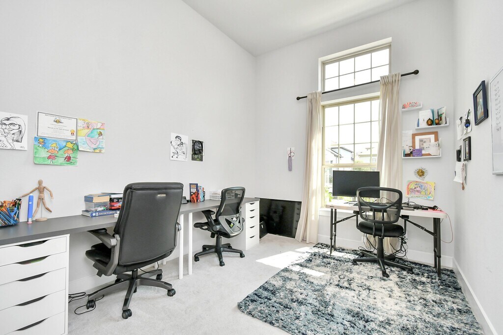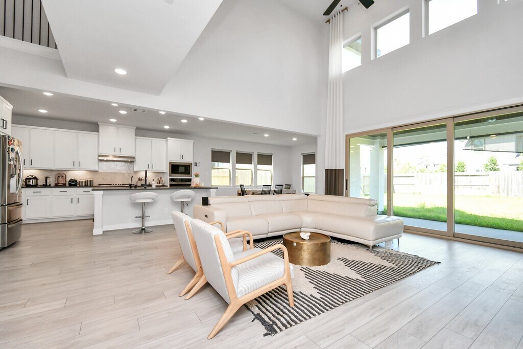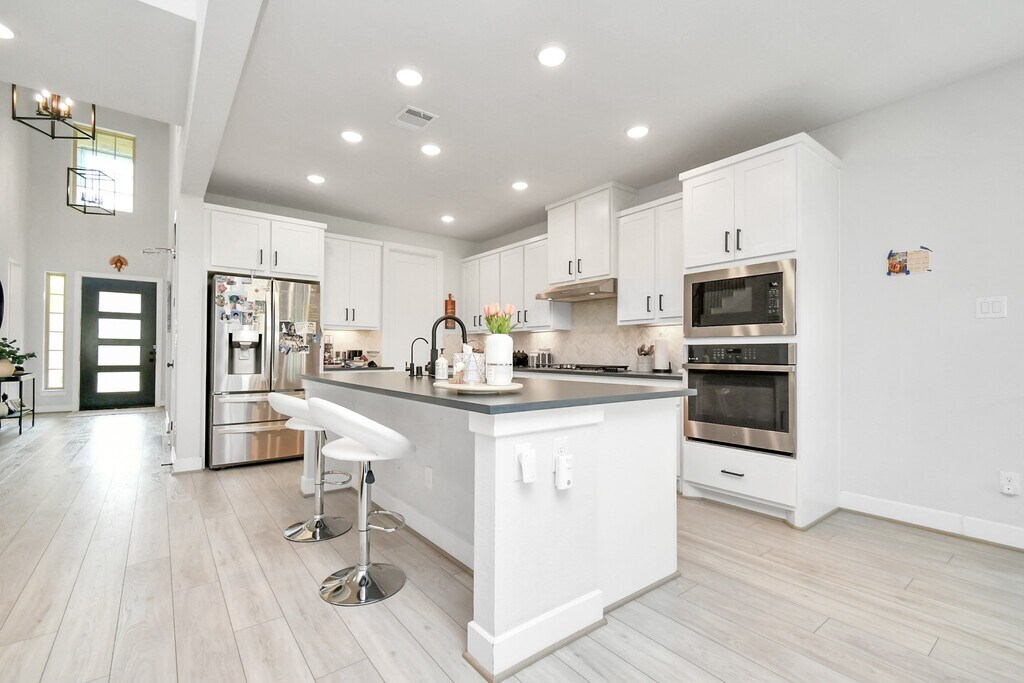 Step into this stunning contemporary home,designed with modern elegance and spacious comfort. The soaring ceilings and open floor plan flow effortlessly from the entryway to the living areas. The gourmet kitchen features sleek cabinetry,stainless steel appliances,and a large central island,perfect for both entertaining and daily living. Natural light pours through expansive windows in the living area,showcasing the beautifully maintained backyard. A dedicated home office or flex space offers a quiet retreat,while the media room is ideal for relaxation. Upstairs,enjoy generously sized bedrooms and a private balcony. The master suite includes a luxurious en-suite bathroom with a double vanity,walk-in shower,and soaking tub. Outside,the covered patio and lush lawn extend your living space. Located in a desirable neighborhood,close to schools,shopping,and dining,this home provides the perfect blend of style,comfort,and convenience. MLS# 14788735