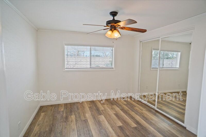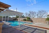 Beautiful 4-bedroom, 2-bath pool home with fantastic curb appeal and a long driveway! This single-story home offers a great layout and plenty of natural light throughout. Upon entry, you’ll find a bedroom to the right featuring a ceiling fan, built-ins, and wood shutters. The spacious living room showcases tile flooring, wood beams, and an abundance of natural light. The dining area also features wood beams, recessed lighting, and a ceiling fan—perfect for gatherings. The kitchen includes wood cabinetry, tiled countertops, a chef’s stove/oven with hood, refrigerator, microwave, and dishwasher. Down the hallway are three additional generously sized bedrooms with ceiling fans and mirrored wardrobes. The primary suite offers an updated bathroom with tiled floors, upgraded vanity, updated light fixture, and a walk-in tiled shower with glass doors. The hallway bathroom has also been upgraded with a modern vanity and subway-tiled shower/tub combination. Enjoy indoor-outdoor living with two sliding glass doors leading to the backyard, complete with a covered patio, multiple sitting areas, and a sparkling pool and spa. With no rear neighbors, you’ll appreciate the added privacy. Additional highlights include a 2-car garage with washer/dryer and built-in storage. Conveniently located near schools, parks, shopping, and restaurants. This home is a must-see!
