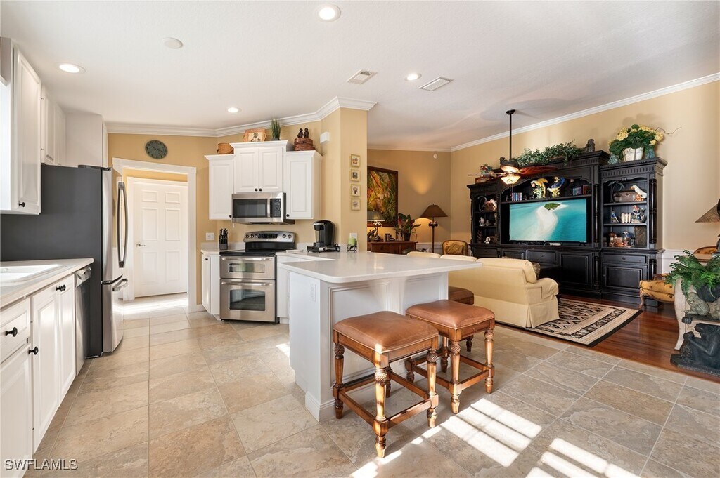 NEW 2026 SEASONAL RENTAL AVAILABLE NOW @ $4,000/MONTH FOR DECEMBER THROUGH APRIL. Welcome to this delightful Capri model home offering 2 bedrooms,2 baths,and a 2-car garage,all overlooking a peaceful wide lake with beautiful water views. Inside,you will find upgraded neutral tile throughout,creating a bright,airy,and easy-to-maintain living space. The home carries a touch of Old Florida charm,offering a warm and relaxed feel that invites you to unwind,savor your mornings,and enjoy the tranquil natural surroundings right from your lanai. Situated within the highly sought-after Village Walk community,residents enjoy a true resort-style lifestyle with access to a tropical pool,separate lap pool,tennis courts,basketball court,and a vibrant town center featuring a restaurant,business center,bank,hair salon,and even convenient on-site gas pumps. This home combines comfort,convenience,and classic Southwest Florida character,making it a wonderful seasonal retreat.