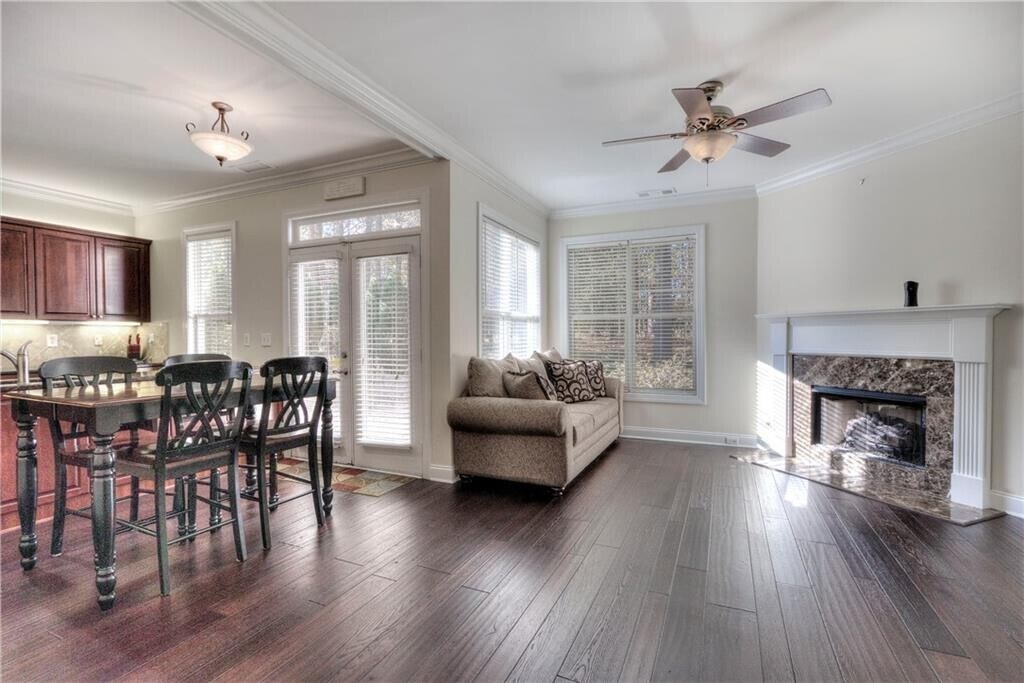 TEXT ANDREA AT WITH ALL QUESTIONS. Great Location,Upscale Neighborhood & Walking Distance to Downtown Kennesaw! Updated End Unit Townhome with 3 Bedrooms and 2.5 Baths. The Covered Front Porch and French Doors welcome you. Open Concept Floor Plan with Updated Fixtures. Hardwood and Tile Floors throughout Main level. Modern Kitchen features Granite Counters,Newer Appliances,Tile Backsplash & Peninsula Island. Spacious Family Room with Great Natural Light and Gas Logs Fireplace. Split Bedroom Plan. There is a Spacious Primary Suite with Vaulted Ceiling. Large Owner's Closet. Primary Bath boasts Linen Closet and Large Vanity with Separate Soaking Tub and Shower. Two Secondary Bedrooms have Adjacent Full Bath. Private Paver Stone Patio for Quiet Evenings & Saturday Morning coffee. TEXT ANDREA AT WITH ALL QUESTIONS.