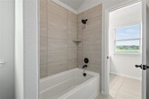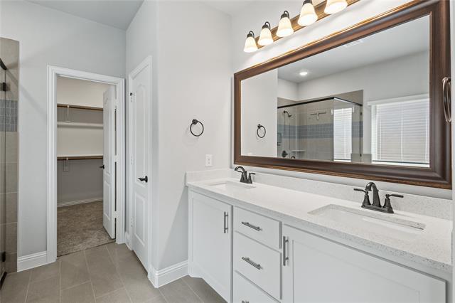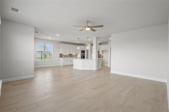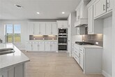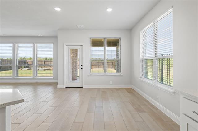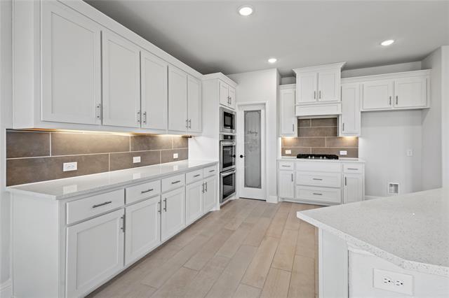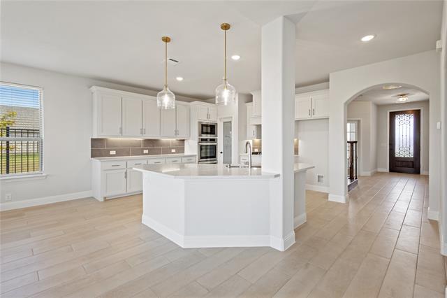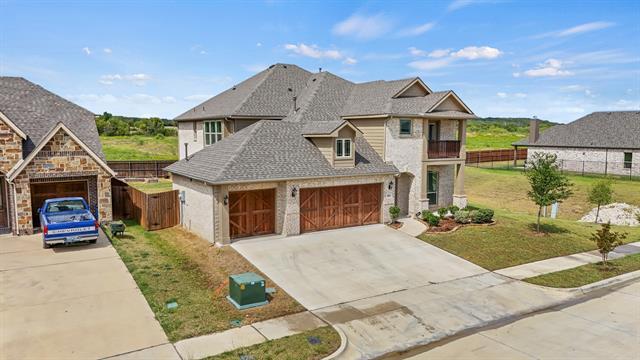 Introducing the stunning Dewberry III plan by Bloomfield Homes, now complete and ready for you in The Parks at Panchasarp Farms. This residence showcases a striking white-brick exterior, a 3-car garage with stately cedar doors, and an 8-ft mahogany front door with iron and glass accents, setting the tone for quality and style. Inside, you’ll find wood-look tile flooring in all main living areas and plush upgraded carpet in the bedrooms. The deluxe kitchen impresses with granite countertops, a decorative tile backsplash, a wood vent hood, pot & pan drawers, and built-in stainless steel appliances, including a gas cooktop and double oven. Plus, enjoy Bloomfield’s largest walk-in pantry—perfect for organized storage. The primary suite features granite counters in the bath, while 2-inch faux-wood blinds add a finished touch throughout. Upstairs, a spacious game room and four additional bedrooms await, with two sharing a convenient Jack & Jill bath. Outdoor living shines with an extended rear covered patio overlooking a large backyard bordered by stained fencing with metal posts and two gates, plus metal fencing along the greenbelt for beautiful views. Additional highlights include full landscaping, exterior lighting, and gutters. Come see this exceptional home today and experience the comfort, craftsmanship, and community that Bloomfield Homes is known for.