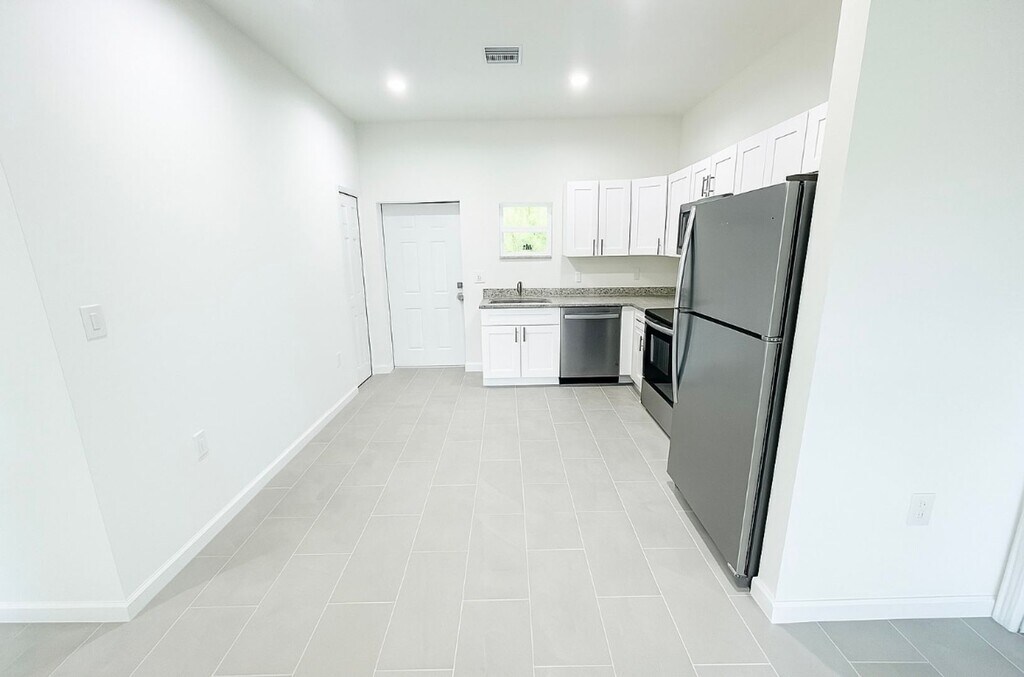 Welcome to your dream home in Lehigh Acres, FL! This brand new, move-in ready home is a gem in the heart of the city. With two spacious bedrooms and two full bathrooms, this cozy cottage is perfect for those who value comfort and style. The primary bedroom comes with an en-suite featuring a large tiled shower. The home boasts all-tile floors throughout, adding a touch of elegance and ease of maintenance. The eat-in kitchen is a chef's delight, equipped with stainless steel appliances, granite counters, wood shaker cabinets, and a pantry for ample storage. The open front porch and covered rear lanai offer perfect spots for relaxation. The large backyard is a blank canvas for your outdoor activities. The home also features impact windows for added safety. The oversized one-car garage includes a washer and dryer hook-up for your convenience. This home is conveniently located close to downtown Lehigh and SR 82, providing easy access to FT Myers. It's also near all the amenities Lehigh Acres has to offer. Pets are welcome in this friendly neighborhood. Don't miss out on one of the lowest priced new construction homes in the area. See it today and make it yours!