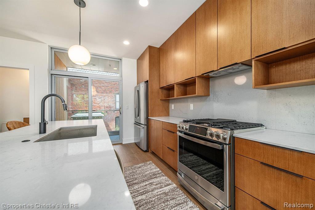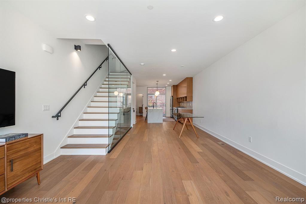 Rare opportunity to move into this luxury 4-story City Modern condo! Available for a November move-in. Many outdoor areas: front porch, 2nd floor balcony & 2 rooftop spaces with great views of the city! This 2 bedroom, 2 and 1 half bath Smarthome includes an attached 2 car garage! The light & airy design features floor to ceiling windows, hardwood floors, custom lighting & closets and touches of brushed gold & matte black throughout! The entry-level mud room has brick detail and step up to the open concept Dining, Great Room & Kitchen w/ a stunning glass wall feature over the staircase. The kitchen boasts stainless appliances, waterfall quartz island and countertops. The 3rd floor has a primary ensuite w/ 2 walk-in closets, triple vanity bathroom, guest bathroom and bedroom w/custom built-ins, laundry area and linen closet. The 4th floor holds a bonus entertaining space w/ wet bar & 2 outdoor decks! Located in Brush Park between Downtown & Midtown offers many conveniences out your front door!