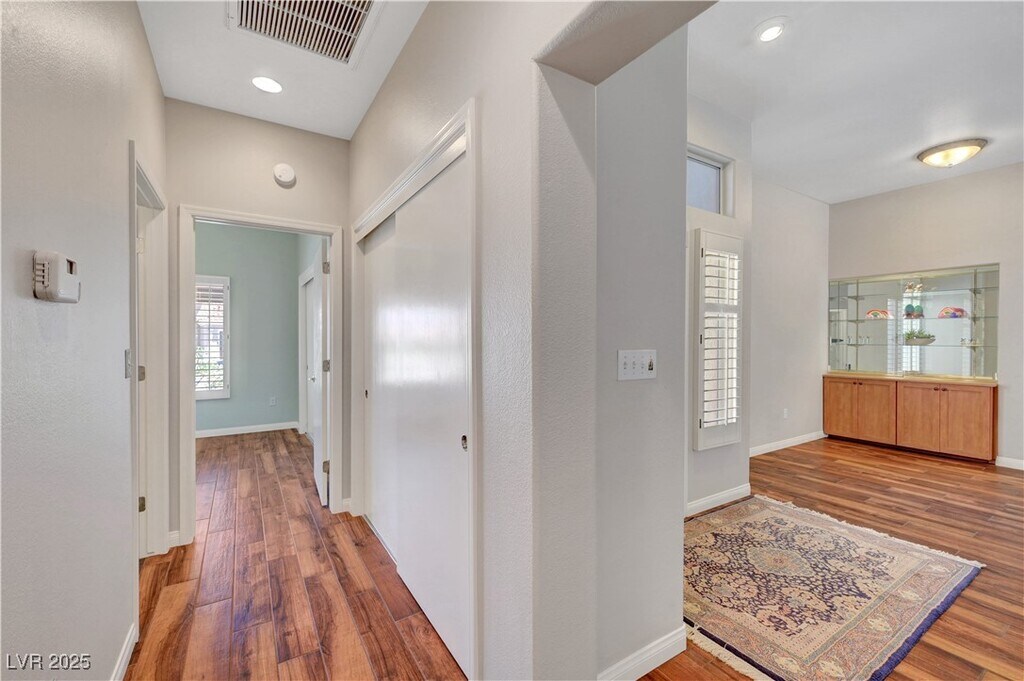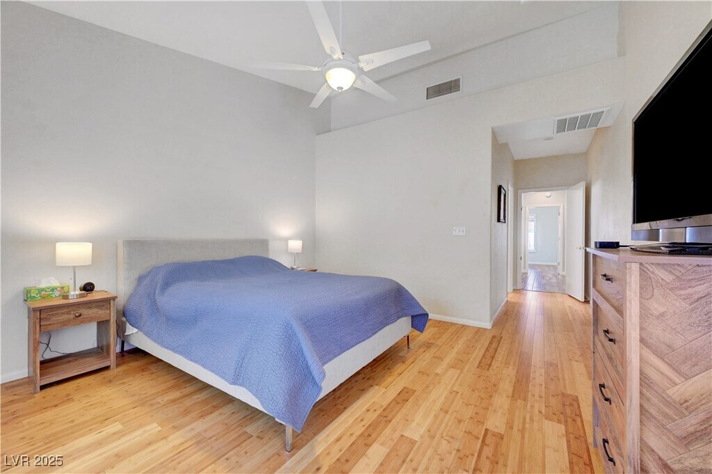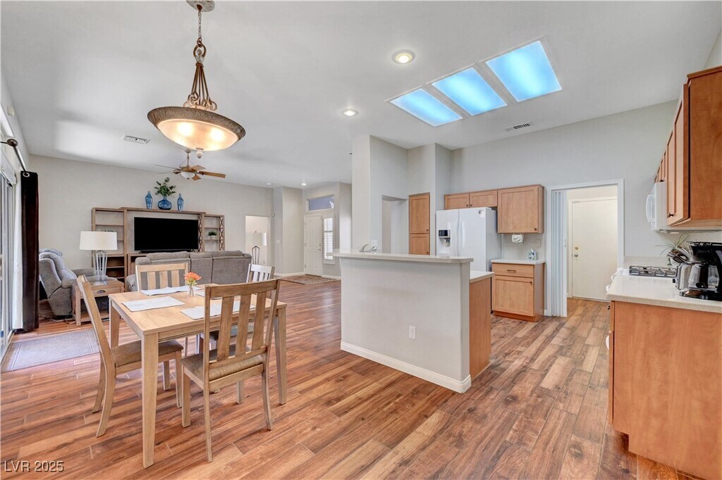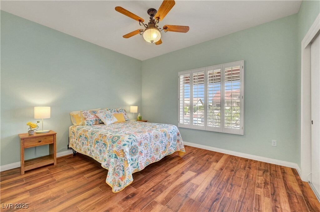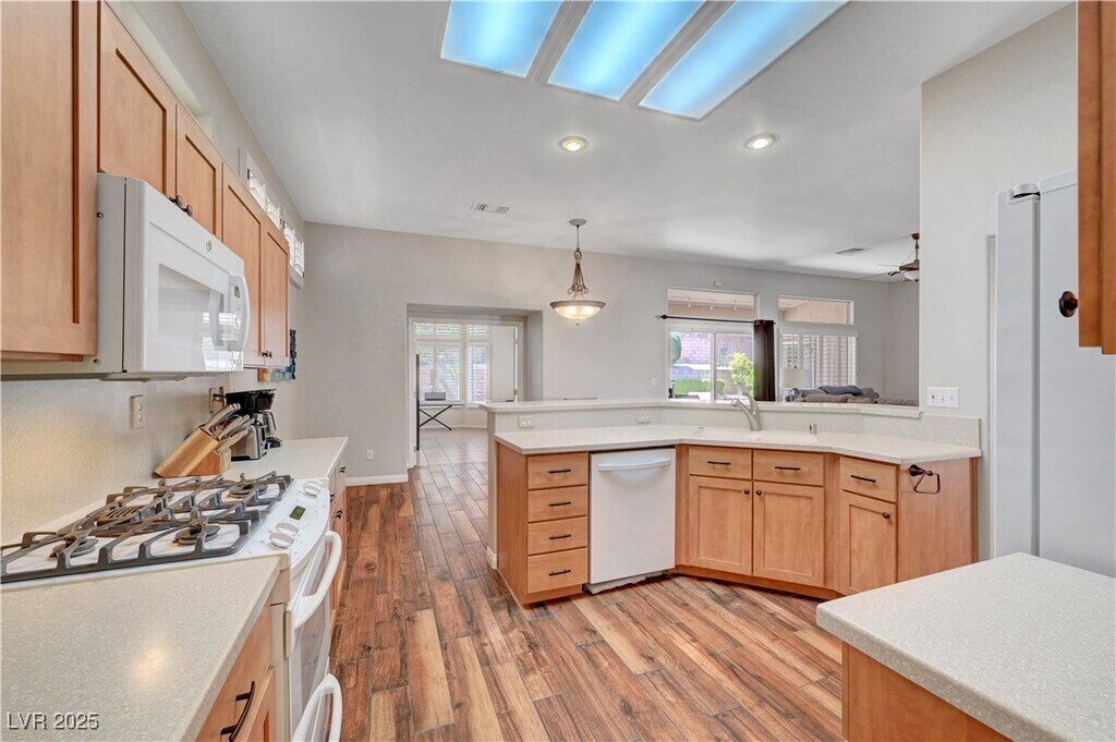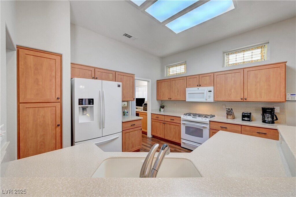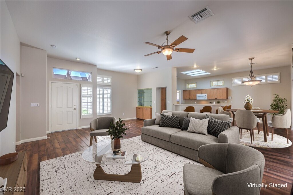 Welcome to this semi-custom Tahoe model located in Sun City Summerlin, one of the premier active adult 55+ communities in Las Vegas. This home offers exceptional curb appeal with a multi-level walkway and mature landscaping. The open-concept kitchen features refaced cabinets, solid surface countertops, and all appliances. Double doors lead to the spacious third bedroom, which easily transforms into a formal dining room, home office, or den. The primary suite showcases bamboo wood flooring, a bay window, ceiling fan, Ensuite & walk-in closet. Step out into the low maintenance back yard complete with an oversized paver patio, synthetic grass—ideal for enjoying the serene desert lifestyle. Enjoy all Sun City Summerlin has to offer: clubhouses, golf courses, indoor/outdoor pools and spas, tennis and pickleball courts, pet parks, theaters, and a full social calendar. Minutes from Downtown Summerlin’s premier shopping, dining, and entertainment—Schedule your private viewing today!