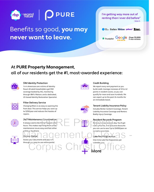 Looking for a 3-bedroom home for rent in Corpus Christi with a yard and garage near NAS Corpus Christi? Welcome to 2805 Summer Ridge, a beautifully maintained 1-story home in the Brandywine subdivision offering space, convenience, and an excellent central location. This 3-bedroom, 2-bathroom home with a 2-car front attached garage features an open-concept layout with high ceilings, creating a bright and inviting living space. The living room has tile flooring and a cozy wood-burning fireplace, perfect for relaxing or entertaining. The kitchen is designed for functionality with a breakfast bar, center island, and pantry, offering plenty of prep space and storage while staying open to the main living area. The home includes three spacious bedrooms with brand new carpet, while the main areas feature durable tile flooring throughout, making maintenance easy and practical. Step outside to a large, fenced backyard, ideal for outdoor entertaining, pets, or simply enjoying the Texas sunshine. Home Features • 3 Bedrooms • 2 Full Bathrooms • 2 Car Front Attached Garage • Open Concept Layout • High Ceilings • Tile Floors in Living Areas • New Carpet in Bedrooms • Wood Burning Fireplace • Kitchen Island + Breakfast Bar • Pantry Storage • Large Fenced Backyard • One-Story Home Prime Corpus Christi Location This home sits in the Brandywine subdivision, conveniently located near many of Corpus Christi’s most important destinations. Nearby highlights include: • NAS Corpus Christi Naval Air Station – short commute for military personnel • SPID and Crosstown Expressway for easy commuting • Hospitals and medical centers • Local parks and recreation areas • Shopping, grocery stores, and restaurants • Quick drive to Corpus Christi Bay and downtown Schools (Corpus Christi ISD) • Barnes Elementary • Adkins Middle School • King High School Customizable Resident Benefit Package Included! Enjoy the benefits of the Resident Benefits Package (RBP), tailored to your needs. Choose from our tiered pricing options, starting at just $25.99*/month. Your RBP may include: –Liability insurance –HVAC air filter delivery (for applicable properties) –On-demand pest control –And more! Contact us today to learn more about the RBP tiers and find the perfect fit for you. Additional Offers: –This property comes equipped with Gig-Speed Internet at $65.00/month! Pets: PETS ACCEPTED: (Only 1 Permitted) To simplify pet verification and ensure policy clarity, we use PetScreening, a third-party service. All applicants with pets must complete this screening. Full animal policy details are available on our website. Breed restrictions apply. Pet Fees: $400 Non-refundable, for first pet, $250 for each additional pet. Monthly Pet fee ranges from $30-$80, per pet, per month. *Inapplicable to assistance animals. For details or showings, contact PURE Property Management or visit . For details regarding our qualifying criteria visit: residents/corpus-christi-rental-application-guidelines/ DRE#9011392 Note: Information is reliable but subject to change. Verify all details before applying. Amenities: oven/range electric, pantry living room, fenced yard, dishwasher, 2 car attached garage, wood burning fireplace
