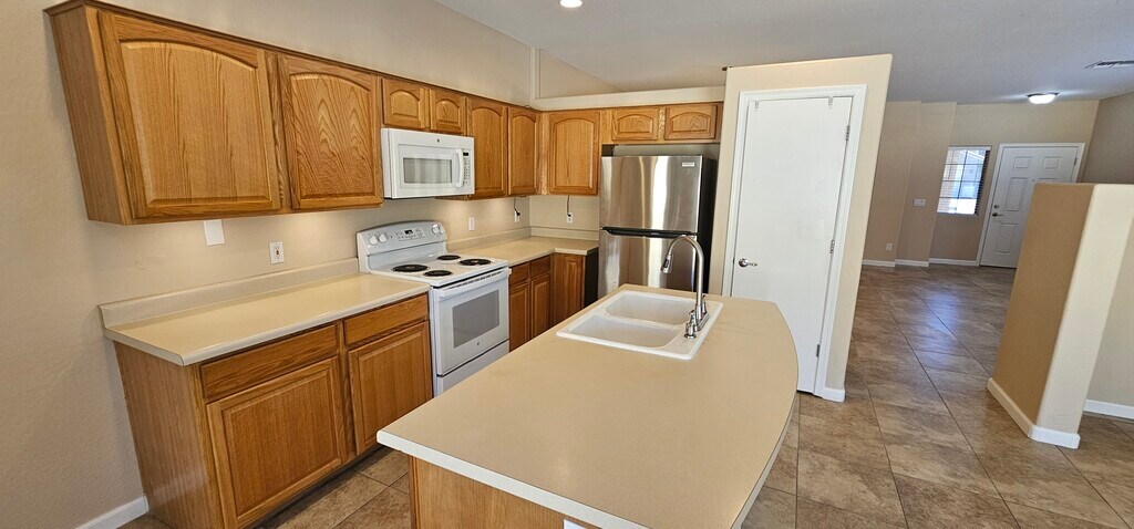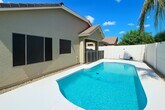 Spacious, beautiful, and move-in ready home with NO carpet, new designer interior, and exterior paint. New blinds, an open kitchen with a center island, and a family room line of sight. Fenced pool.