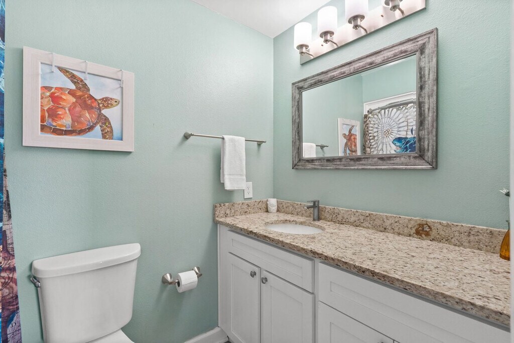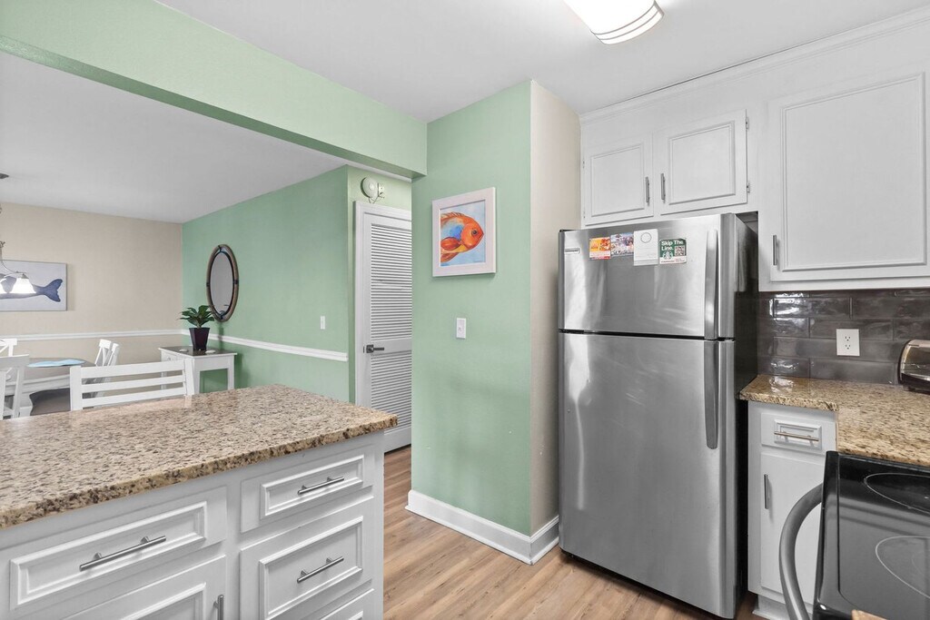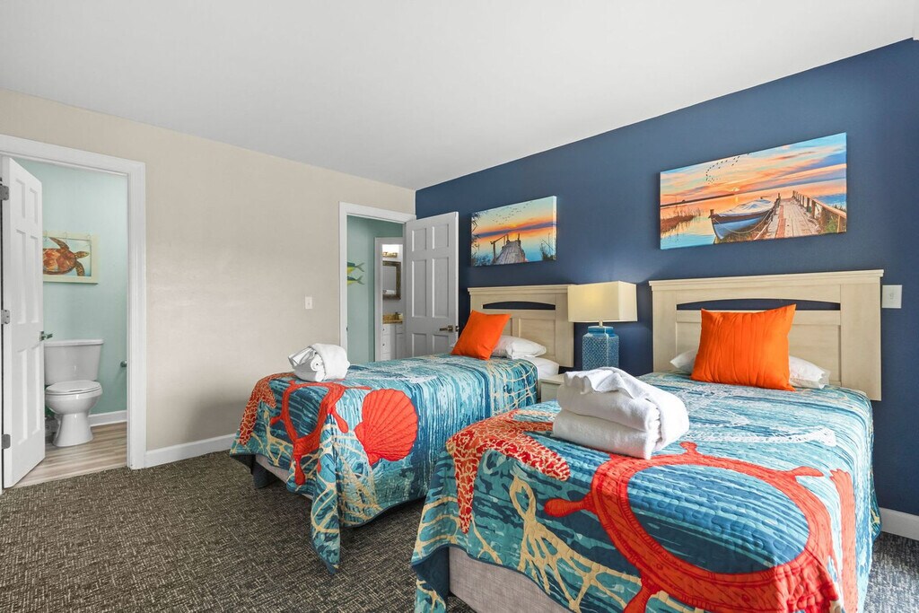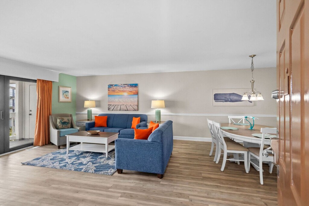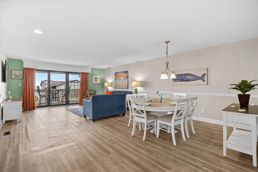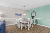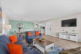 Feel at home in this well-kept, updated, and modern condo on the 3rd floor of a building with arguably the best views in the community. Located in the heart of Myrtle Beach, this apartment is directly across the street from a public beach access point and only a few blocks from Broadway at the Beach, the Myrtle Beach Boardwalk, and the Convention Center. The open floor plan living and dining areas are spacious and tastefully appointed with plenty of seating. There is a 55" flat-screened TV, queen sleeper sofa and separate loveseat, a large dining table seating 6, and an additional dining table on the ocean-facing covered balcony. The fully stocked open kitchen features stainless appliances and granite countertops. The primary suite has a queen-sized bed, a twin bed, a large closet, a 40" flat-screen TV, a beautifully updated en suite bathroom, and private balcony access. The second bedroom also has two twin beds and back balcony access with additional seating. Back entrance to the pool and hot tub deck is accessible from the back balcony. A car is recommended, but you can also walk several places. Uber is available in the area, but can be limited at times. Backpack-style beach chairs are available. Located directly across the street from the public beach access at 29th Avenue North in Myrtle Beach, this apartment is super close to all that Myrtle Beach has to offer both on the water and inland. Starbucks and Ben and Jerry's are across the street, the renowned Sea Captain's House with ocean front bar is a 3-block walk away, and you will be less than 1 mile from Broadway at the Beach, the Myrtle Boardwalk, and the Myrtle Beach Convention Center. Quiet hours are between 11 pm and 7 am as per citywide ordinance. Please consider your neighbors and keep noise at a reasonable sound level. The property is non-smoking, and pets are not permitted. By state law, occupancy may not exceed 6, and maximum occupancy includes infants and children. Quiet hours are between 11 pm and 7 am. Please treat our home and common areas with the same respect as you would your own. Pool hours are from 9 am to 10 pm. No glass or pets are allowed in the pool or surrounding enclosure. No children under 12 years of age are allowed in the pool without a parent or guardian. Portable grills are not permitted on the balconies or patios. All garbage should be firmly secured in bags and deposited in the dumpsters located on 29th Ave. N just to the West of the main parking lot and across from Starbucks. No flammable fluids such as kerosene, explosive or flammable materials or any other articles deemed hazardous are permitted in units. Please do not obstruct common areas with bikes, floats, chairs, etc. No boats, trailers, or oversized vehicles shall park in the lots. Check-in is from 4:00 to 10:00 PM, and check-out is at 10:00 AM. There is a minimum age requirement of 25. [SI]