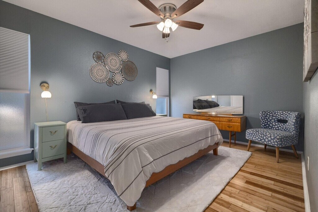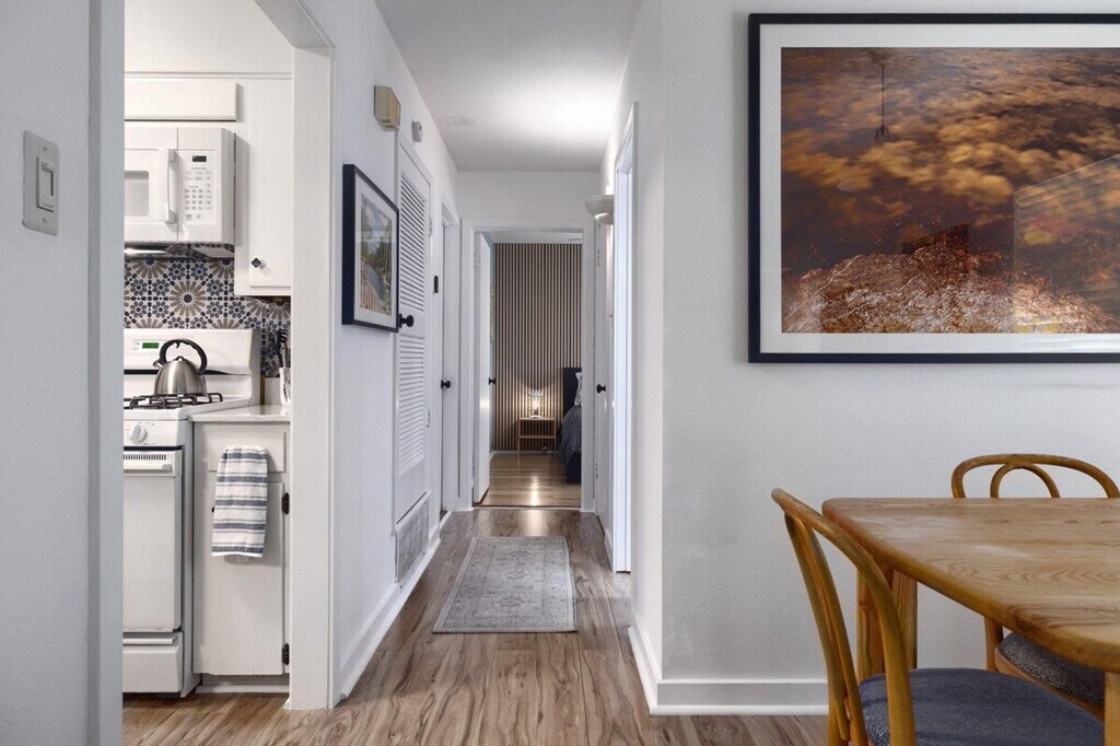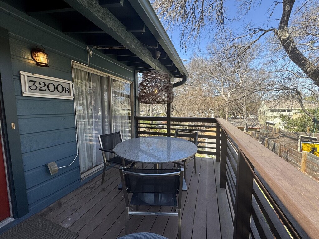 The advertised rate of $6,208/month is the lowest available price, based on a 30 day(s) stay with a move-in date of August 24, 2026. Rates vary depending on the duration of stay, season, and other parameters. For exact pricing and additional pricing components, please visit our website and enter your desired move-in and move-out dates. The rate is applicable when billed upfront; it can be higher if billed in multiple payments. Feel at home in this quintessential Austin bungalow-style 2-bedroom duplex, located just off S Lamar. This home is quiet, serene, and peaceful, with incredible natural light and surrounded by trees. This gem features a living room soaked in natural light, a balcony sitting in the canopy of the overhanging trees, and an eclectic collection of vintage and custom-made furnishings. Off-street driveway parking and gigabit internet (with ethernet connection available) are available. Enjoy the smart TV (log in to your own streaming services). The apartment is close to so many great eats and drinks. Includes gigabit internet with ethernet connection available. [SI]