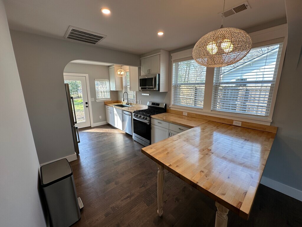 Newly renovated 2-bedroom home featuring two en suite bathrooms, including a primary bath with an oversized soaking tub. The home offers a new energy-efficient HVAC system and updated appliances. The kitchen includes a gas range, and a washer and dryer are provided with the rental, along with an on-demand tankless water heater by Rinnai. Additional features include tile and wood flooring throughout, a fully fenced backyard, and a detached garage with extra parking space. Centrally located in Charleston with convenient access to I-526 for Mt. Pleasant and West Ashley, as well as I-26 to Downtown, plus multiple backroad options to help avoid traffic. Just minutes from Park Circle dining and shopping, Boeing, Medical University of South Carolina, Joint Base Charleston, Tanger Outlets Charleston, Centre Pointe, Walmart Supercenter, Charleston International Airport, and Publix at Ashley Landing. Less than a mile away: King Bean Coffee Roasters, Food Lion, Tideland Brewing, Freehouse Brewery, Marvin's Seafood, Harbor Freight, Planet Fitness, and Tua Lingua. The lease term is one year- however, shorter lease options may be available with adjusted terms. The tenant is responsible for water, gas, electric, and lawn maintenance. The property includes biannual scheduled preventative maintenance visits to service the HVAC system and other major appliances. Approved pets are welcome with a one-time, $300 non-refundable deposit. Smoking is not permitted inside the home. No vouchers accepted. No evictions.