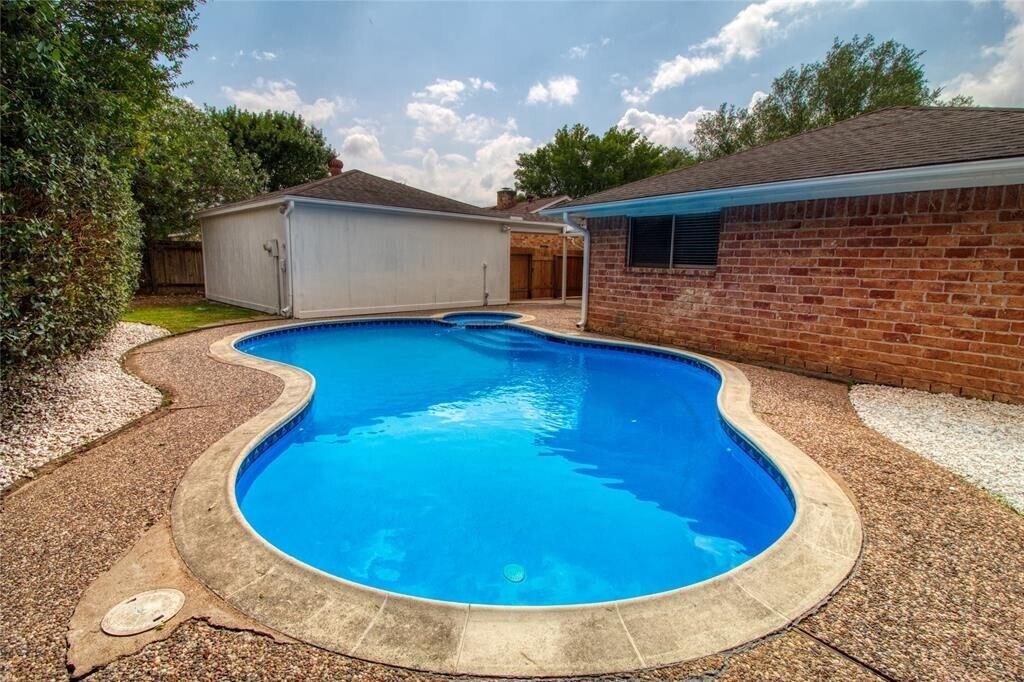 Welcome Home!! Beautiful cozy 3 bedrooms 2 bathrooms 2 cars detached garage with new paint,tile and wood laminate floors,big master bedroom w/ double closets in master bath. Private swimming pool with covered patio to relax and enjoy in the hot Summer.Ready to move in. Zoned to top rated Fort Bend School System - Clements High school. Washer and dryer included. MLS# 82553924