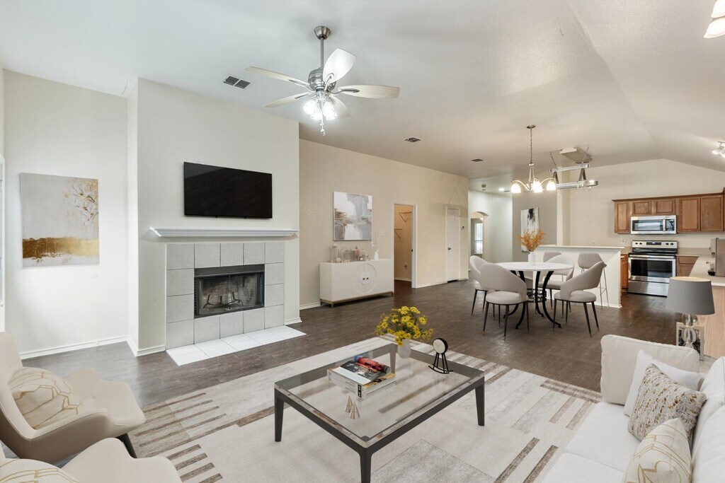 Step into a world of spacious charm the moment you cross the threshold. This beautifully updated 4-bed, 2-bath home with a 2-car garage is a gem. Gleaming faux wood floors adorn the expansive family room and dining area, creating a warm and inviting ambiance.The open kitchen is a chef’s dream, featuring sleek stainless steel appliances and a convenient island, perfect for culinary adventures and entertaining guests.Retreat to the lavish Master Suite, your private oasis with a generous walk-in closet and a luxurious master bath. Positioned separately from the other three bedrooms, it ensures tranquility and privacy, providing a serene escape from the hustle and bustle of daily life.Outside, enjoy leisurely moments lounging by the community pool, or take a relaxing stroll to the nearby lake and park for fresh air and scenic views. With shopping, dining, and retail options just minutes away, convenience is at your fingertips. Step into a world of spacious charm the moment you...