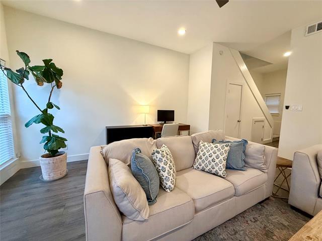 Located in the heart of Oak Lawn, this beautifully maintained condo offers city living with a private retreat feel. Set in a small, gated community, the home is surrounded by top dining, shopping, and entertainment, just minutes from Uptown, Turtle Creek, and Downtown Dallas. The light filled living area features vinyl wood plank flooring and flows into an updated kitchen with stone countertops and stainless steel appliances. A convenient half bath is located on the first floor. Upstairs are two nicely sized bedrooms, each with an ensuite bathroom and second-floor laundry. Stackable washer is included. Enjoy a private fenced patio and backyard, covered parking, and an unbeatable location in one of Dallas’s most desirable neighborhoods. It will come with one assigned covered parking space, one additional space can be added for $50 monthly. Refrigerator in kitchen will stay!