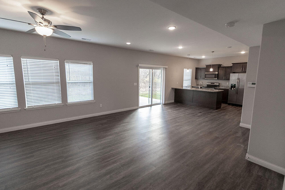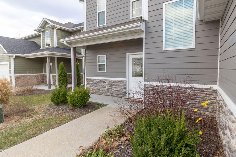 Come home to this gorgeous 3-bedroom,2-bath home located in the desirable Cobblestone Cottages community,just minutes from Highway 63 with easy access to shopping,dining,and more. This home offers a bright open floor plan with upgrades throughout,including stainless steel appliances,vinyl plank flooring,a spacious kitchen pantry,and a large center island with plenty of storage. The main level features a convenient half bath,while upstairs you'll find the primary suite with a generous walk-in closet and private bath,two additional bedrooms,a full hallway bath,and washer/dryer hookups in the laundry closet. Enjoy easy accessibility with a walk-in shower and unwind on the covered back patio complete with a ceiling fan. Call today for more information and to schedule your showing!