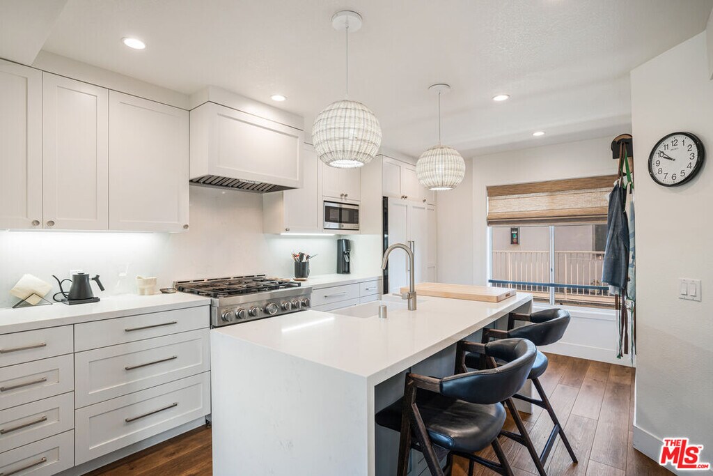 Beautifully renovated, light-filled townhouse with designer finishes in an unbeatable Santa Monica location. Offering 3 bedrooms + a versatile loft/office with a large rooftop deck and 2.5 bathrooms, this residence - available furnished or unfurnished - combines comfort and style across multiple levels. The magazine-worthy, updated kitchen boasts custom cabinetry, a striking island, and high-end appliances. All three bedrooms are located on the main level, including a spacious primary suite with fireplace, spa-like ensuite bath with double vanities, and direct access to a private patio. Two additional bedrooms, each with their own patios, share a beautifully renovated guest bath. Upstairs, soaring ceilings and an elegant double-sided fireplace anchor the open living room, adjacent to a chic powder room and bright dining area with its own balcony. A loft space above is perfect for an office or guest room, leading to the expansive rooftop deck - ideal for entertaining or relaxing. Additional highlights include side-by-side parking in a gated garage, modern upgrades throughout, and a boutique 4-unit building that is exceptionally well-maintained. Perfectly positioned near Erewhon, Montana Avenue's vibrant boutiques and restaurants, and just minutes from the beach. MLS# 25617673
