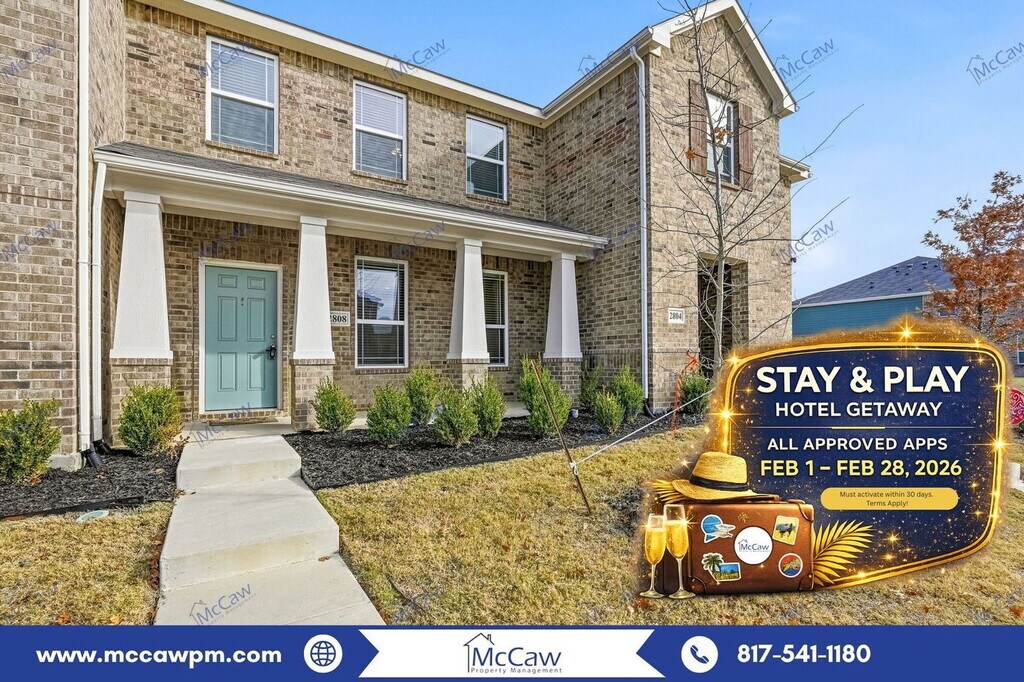 STAY & PLAY HOTEL GETAWAY*** FOR ALL APPROVED APPS, FEB 1–28, 2026 (FEES MUST BE PAID AND MOVE-IN DATE SCHEDULED) Discover comfort and convenience at 2808 Baneberry Lane — a wonderful 3-bedroom, 2.5-bath townhome nestled in a quaint, well-kept Mesquite subdivision. This home offers an inviting layout with plenty of natural light, a spacious living area that flows effortlessly into the kitchen, and all bedrooms tucked privately upstairs. Enjoy the ease of low-maintenance living without sacrificing space or style. The community has a peaceful neighborhood feel while still being close to dining, shopping, parks, and major highways for an easy commute. This one is truly move-in ready — perfect for anyone looking for a blend of charm, comfort, and location. Pets welcome with prior approval, deposit & pet monthly rent! **Security deposit options: PAY A REFUNDABLE CASH DEPOSIT IN FULL OR PAY A MONTHLY FEE IN LIEU OF CASH DEPOSIT UPON APPROVAL** By submitting your information on this page you consent to being contacted by the Property Manager and RentEngine via SMS, phone, or email.