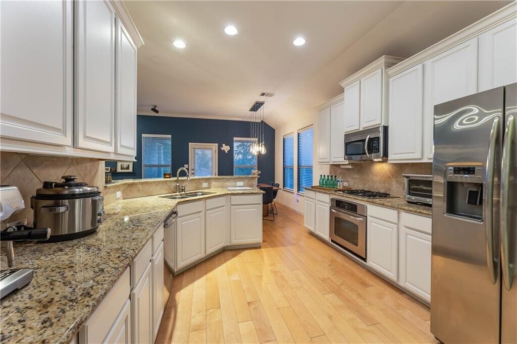 This one story gem locatedin Falcon Pointe in Pflugerville boasts an open floor-plan, updated paint and light fixtures. Spacious primary bedroom with an extra bonus room attached showcases its serene view of the lush backyard and garden. Green features include a Tesla car charger and Tesla solar panels, keeping your electric bill very low. Light blonde hardwood floors run throughout the main areas of the home. Room directly adjacent to the entrance can be used as an office, dining area, or formal living space. Granite in kitchen with stainless appliances. Outdoor covered oasis invites you to enjoy the outdoors and provides a great place to end and/or start your day. Conveniently located near the neighborhood schools, community park/pool, Lake Pflugerville Park, all the great shopping and entertainment Pflugerville has to offer with easy access to the 130 toll for smooth commuting. Pet deposit is $400 per pet of which 1/2 is non-refundable. MLS ID 3646701
