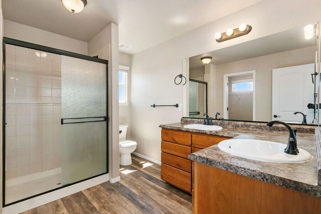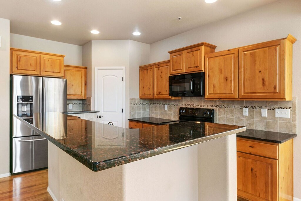 Available early January 2026. We will schedule showings with an approved application. Call or text "INFO Exmoor" to for quickest response. Beautiful bright and sunny town-home in Rigden farms subdivision with 3 bedrooms, 4 bathrooms, and oversized 2 car garage. This home has a large breakfast bar with granite counter-tops. Kitchen, dining room & foyer have hardwood flooring. Blinds throughout, as well as central air, humidifier and upstairs laundry. Large fenced 3 rail side yard. Basement has been professionally finished. Tenant pays Gas, Electricity, Water/Sewer, Trash. Security deposit is due at lease signing. $18 per month is added for Tenant Benefit Package (ask for details). No Smoking or Vaping on the property. Pet Policy: Up to 2 dogs welcome, under 35lbs, with $300 pet deposit and $35 per month pet rent each. No pet cats, fish tanks, dinosaurs, or man-eating tigers. Sorry! Requirements: Good Credit 650 or higher, household income at least 200% the annual rent, good landlord references or current home owner, ability to pass a criminal background check. All requirements will be verified. Equal Housing Opportunity Provider. Benjamin Wishart Employing Broker. The prospective tenant has the right to provide to the landlord a portable tenant screening report, as defined in section 38-12-902 (2.5), Colorado revised statutes; and if the prospective tenant provides the landlord with a portable tenant screening report, the landlord is prohibited from charging the prospective tenant a rental application fee; or charging the prospective tenant a fee for the landlord to access or use the portable tenant screening report. Any portable screening report must be completed within 30 days of the application date. The screening report must be made available to the landlord at no cost directly from the consumer reporting agency or through a third party website that regularly engages in providing consumer reports.