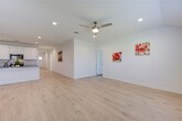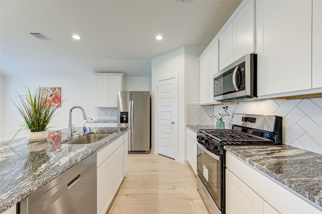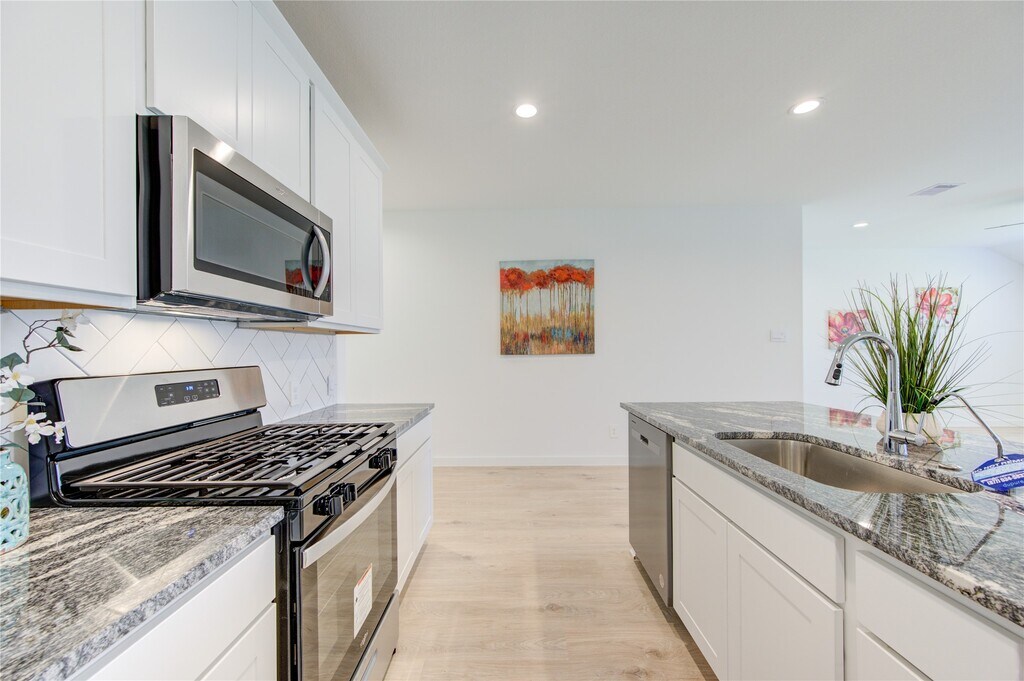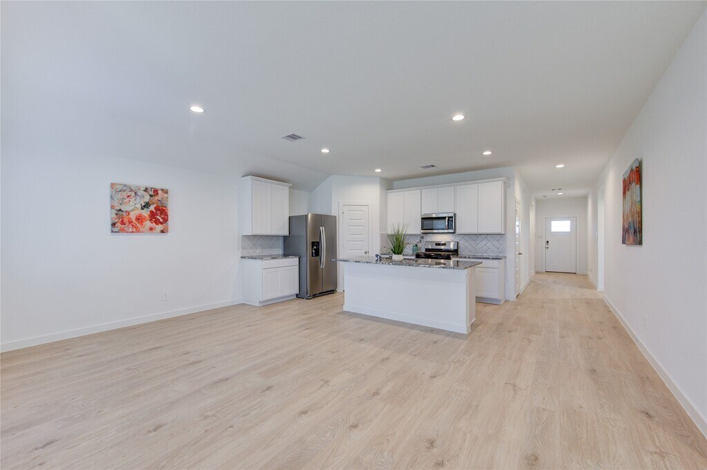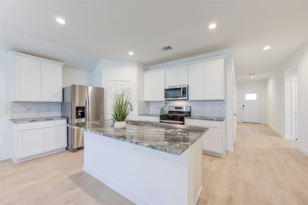 Gorgeous Rev Wood Floors throughout! Huge Family Area W/Wall of Windows looking out to your Covered Patio! Family Area flows into the Gourmet Kitchen & Casual Dining! Gourmet Kitchen W/Beautiful Tall Shaker Cabinets,Whirlpool Stainless Steel Appliances,Huge Island,Gorgeous Granite Counters. Primary Suite tucked away with High Ceilings,Plush Carpet,Luxurious Bathroom W/His & Her Private Undermount Sinks,Cultured Marble Countertops,Massive Seamless Glass Shower,& Walk In Closet! 2 Guest Bedrooms tucked away & a Full Bathroom W/Cultured Marble Counters! Energy STAR Qualified,Tankless/On-Demand H2O Heater! "Smart Home System which allows you to control the Skybell,Locks,Lighting,Thermostat,Wireless Security & control anywhere! Minutes away from Highway 59! Outstanding Fort Bend Schools! Brand new Fridge,washer & dryer included! MLS# 57778609