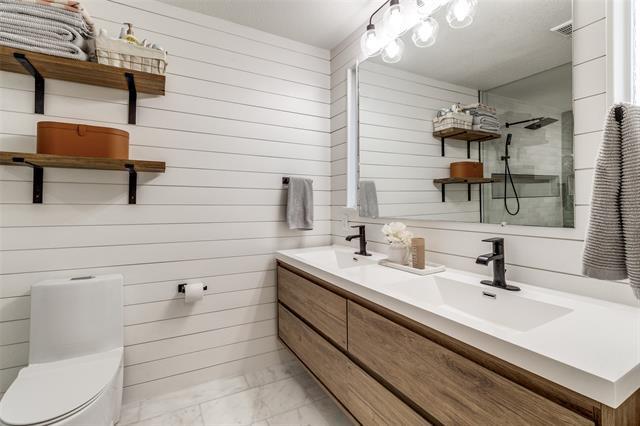 Welcome to 2808 Sharpview Lane, a completely renovated home that’s an instant crowd pleaser. The open-concept kitchen, living, and dining area is designed for effortless entertaining, anchored by a fireplace and a large picture window overlooking mature oak and magnolia trees. This 4-bedroom, 3-bath home features a sought-after double primary layout, with two bedrooms offering ensuite baths. The primary suite is impressively spacious and feels like a true retreat, complete with a spa-style wet room bathroom where a soaking tub sits inside the shower enclosure. One guest bedroom functions as a second primary, featuring its own bathroom and a full wall of closets. Outdoor living shines with a pergola-covered kitchen equipped with a grill, gas burner, mini fridge, and storage—perfect for hosting or relaxing at home. An automatic gated driveway adds privacy, while the basketball hoop brings a fun finishing touch. Stylish, functional, and made for entertaining—this home truly delivers.