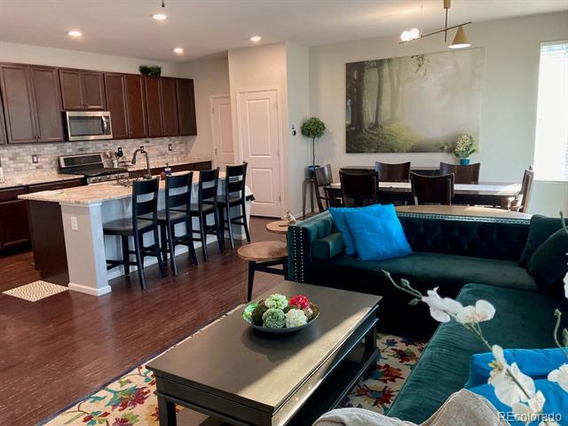Available for rentals of 30 days and longer. Modern, fully furnished, open plan, 2 office, home located on open space in the fabulous community of "The Meadows" at Castle Rock. Walk out the front door onto the extensive open space walking/bike trail system or 2 blocks to Taft House Recreation Center. Main Floor Large open plan living room with hardwood floors, 50" TV and modern furnishings Dining area opens onto patio Contemporary kitchen with granite counters, gas range, stainless steel appliances and island for informal meals Office with large desk, filing cabinet Second Floor Spacious Primary Bedroom, king sized bed, huge walk-in closet, large ensuite bathroom with double sink quartz vanity, bath, shower, toilet, linen closet, tile floor Bedroom 2, double bed, dresser, large built in closet, open space views Bedroom 3, two twin beds, large built in closet, dresser Bathroom 2, bath, shower, double sink quartz vanity, toilet, tile floor Office #2 separate space with two desks, reading chair Basement Unfinished basement/ partly furnished • Fenced yard, 30ft long patio, grassed area • Two car attached garage with automatic garage door • High speed internet + wifi • The first $150.00 of utilities included in rent • Pet policy: Dog OK( max 25 lbs), no cats Fantastic location, minutes to restaurants, Recreation centers and AMC Theater. If you are a health professional it's just a 3 min drive to Adventist Hospital Castle Rock, 15 mins to Skyridge Hospital Lone Tree and 25 mins to Advent Hospital Parker, Children's Hospital Highlands Ranch and CU Hospital Highlands Ranch. Less than 10 minutes to The Outlets at Castle Rock shopping district with grocery stores, restaurants, banks, Sams Club, gas stations, plus local elementary, middle and high schools and the I-25 freeway interchange. In 20-30 minutes you are at the Denver Tech Center, Parker, Highlands Ranch, Lone Tree, Littleton,or heading to downtown Denver or Colorado Springs. Single Family Residence MLS# 7468006