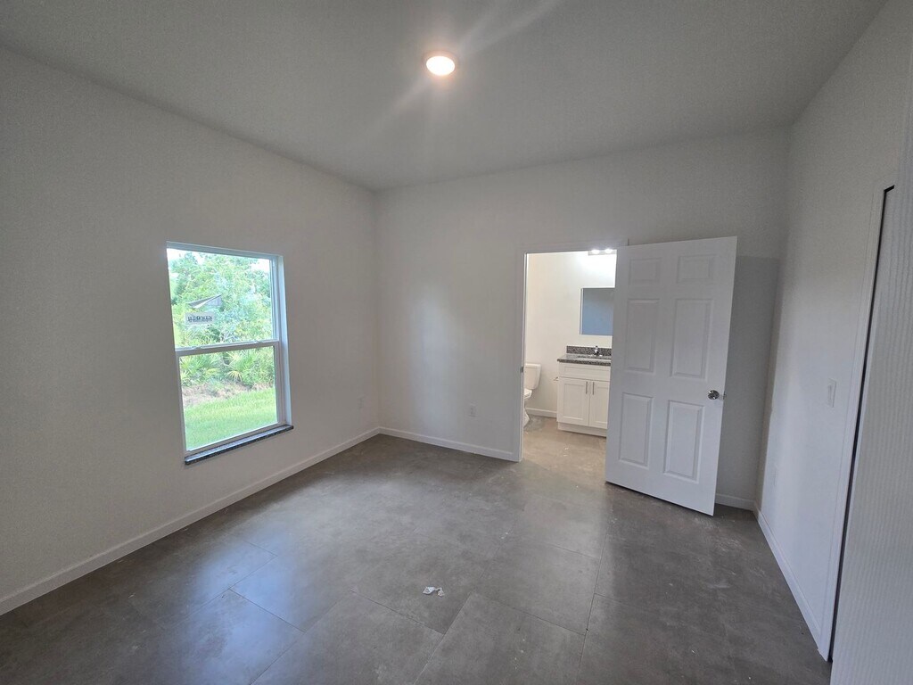 Welcome to a stunning brand- new home nestled in the vibrant community of Lehigh Acres, FL. This two-bedroom, two-bathroom home offers a private setting with a large quarter-acre lot, perfect for those who value space and privacy. The home features an eat-in kitchen equipped with stainless steel appliances, granite counters, plenty of cabinets, and a pantry for all your culinary needs. The ceramic tile floors throughout the house add a touch of elegance and ease of maintenance. The primary bedroom comes with an en-suite bathroom that boasts a large tiled shower and wood shaker cabinets. The house also includes a one-car attached garage with a washer and dryer hook-up. Pets are welcome in this cozy cottage. The property also features impact windows for storm protection. Enjoy the Florida weather on the open front porch or the covered rear lanai overlooking the large backyard. Conveniently located close to downtown Lehigh and SR 82, and all the amenities Lehigh Acres has to offer. This move-in ready home is one of the lowest-priced rentals in Lehigh Acres. Don't miss out on the opportunity to be the first to call this brand new home yours. SEE IT TODAY!