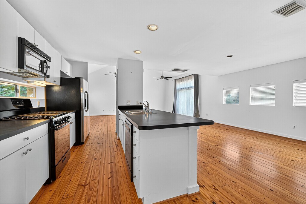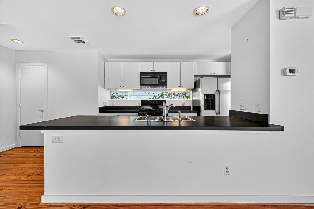 Prime Midtown location—outside the flood zone! This modern townhome offers an open-concept layout that’s perfect for entertaining,plus rare extra parking options. The main living area showcases soaring 17-foot ceilings,rich wood floors,and sliding glass doors that extend the space out to a private balcony. Natural light fills every room,and the kitchen features a breakfast bar with seating for four to five,along with a pantry and coat closet for added storage. The top-floor primary suite boasts a vaulted ceiling,walk-in closet,and a spacious bath. A secondary bedroom with its own bath is located on the first floor,providing flexibility for guests or a home office. Recent updates include AC system in 2022! Just a short distance from Baldwin Park with its renovated playground and lush green space. Quick access to Downtown,the Medical Center,major freeways,dining,and all that Midtown has to offer! MLS# 86745047
