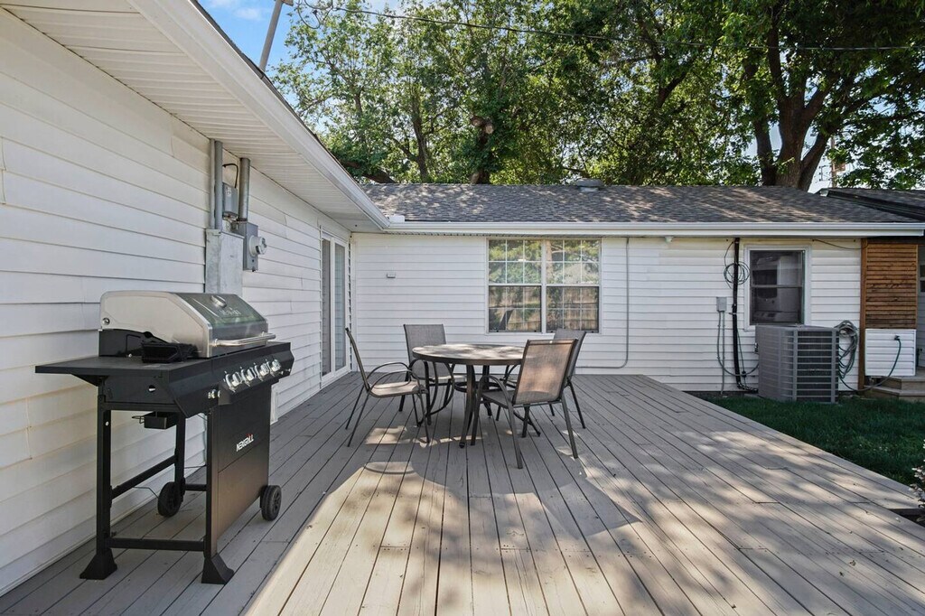 Feel at home in this spacious Oklahoma City retreat, perfect for families and groups seeking a memorable getaway. This property features a private Mother-in-Law suite, an 85” TV in the primary bedroom, two full kitchens, a pool table, and an outdoor grill for epic nights in. Located just a mile from Lake Hefner, five miles from Chisholm Creek, and eight miles from downtown OKC, this home offers comfort, space, and convenience. This thoughtfully designed apartment offers ample space, modern amenities, and a welcoming atmosphere, perfect for families, friends, or multiple groups traveling together. The primary home features three bedrooms, two full baths, and endless entertainment options, including a cozy living room with an 85” Smart TV and a game room with a pool table. The gourmet kitchen is fully equipped with modern stainless steel appliances and granite countertops, ready for any culinary adventure. A private guest house provides additional privacy with its own living area, kitchen, and two comfortable sleeping areas. Nestled in the heart of Nichols Hills, this neighborhood offers a perfect blend of luxury, convenience, and tranquility. Just minutes away from Nichols Hills Plaza and Classen Curve, you'll find upscale boutiques, trendy restaurants, and cozy cafes. Explore nearby Grand Boulevard Park and scenic walking trails, or take a short drive to the Oklahoma City Museum of Art and Paseo Arts District. With easy access to major highways, reaching downtown OKC, Penn Square Mall, and Lake Hefner is a breeze. This property is located in the prestigious Nichols Hills neighborhood, offering easy access to major roads, highways, and public transportation. Whether you're exploring the city or commuting, getting around is quick and effortless. The property is smoke-free and pet-free, ensuring a clean and comfortable environment for all guests. Registration Number: HS-00939-L