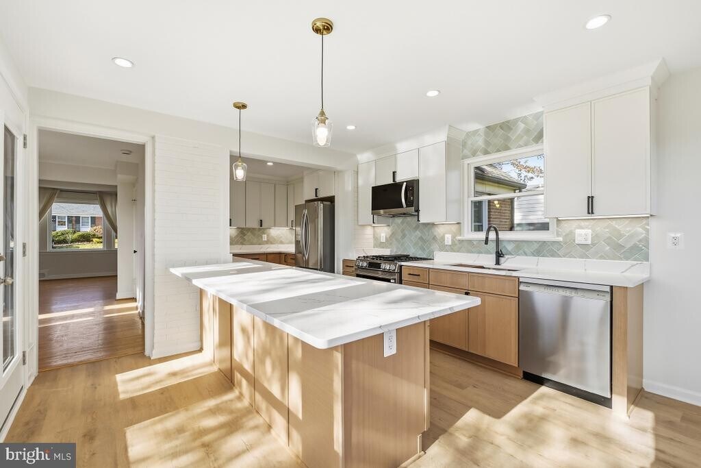 Welcome home to this sunny, beautifully updated Cape Cod in Alexandria City! Perfectly positioned in sought-after North Ridge Estates—just steps from George Mason Elementary and minutes to Shirlington’s shops, dining, and amenities—this charming home offers both comfort and convenience. Off-street parking with an EV charging outlet adds modern practicality. The main level features two bright bedrooms and a full bath, while the upper level offers two additional bedrooms and another full bath—an ideal layout for flexible living. Sunlight fills the home, highlighting hardwood floors on both the main and upper levels. The spacious living room features a gorgeous picture window and a decorative fireplace, flowing seamlessly into the dining room and the fully renovated, light-filled kitchen. Enjoy abundant windows, quartz countertops, new cabinetry and energy efficient appliances, gas cooking, and a generous pantry—truly a cook’s delight. The fully fenced backyard provides a private oasis with space to play, entertain, garden, or simply relax. The finished lower level is perfect as a family room, playroom, or teen retreat, complete with full-size windows, a freshly updated laundry room, ample storage, and direct access to the backyard. With fresh paint throughout, new windows and doors, beautifully refinished upper-level hardwoods, and thoughtful updates from top to bottom, this home is truly move-in ready. An incredible opportunity in an unbeatable location—this gem won’t last! Pets considered on a case-by-case basis.