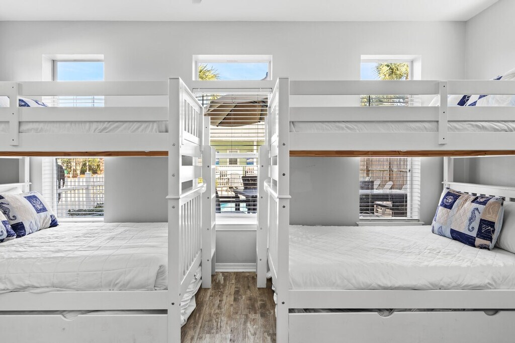 The advertised rate of $16,572/month is the lowest available price, based on a 1 month(s) stay with a move-in date of September 28, 2026. Rates vary depending on the duration of stay, season, and other parameters. For exact pricing and additional pricing components, please visit our website and enter your desired move-in and move-out dates. The rate is applicable when billed upfront; it can be higher if billed in multiple payments. Feel at home in Crystal Tower by the Sea, a stunning three-story, six-bedroom home perfectly situated directly across from multiple beach access points in Destin. This retreat includes a main four-bedroom home and a two-bedroom carriage house, ideal for guests who enjoy a bit of extra privacy. This home features a fully equipped kitchen with stainless steel appliances, quartz countertops, dishes, cookware, bakeware, a standard coffee maker and a Keurig coffee maker. For entertainment, there are Roku-enabled TVs, Hulu Live, and fast Wi-Fi. Enjoy the private pool oasis featuring loungers, a dining area, cozy seating, a fire pit, cornhole boards, and an outdoor ping pong table. A complimentary 6-passenger golf cart is included for guests age 25 and older. Pool heating is available for $350 for your stay. For trips over 7 days in length, the cost is increased, please inquire for rates. Up to 2 pets are allowed with a required, non-refundable pet fee. Located in the heart of Crystal Beach, this home is directly across from the Destin Commons with plenty of shopping, entertainment, and restaurants. The Silver Sands Outlets are within a few minutes drive East with more shopping, restaurants, and a play area for kids. There are plenty of public beach accesses close by within walking/golf cart distance. Crystal Tower by the Sea is just 20-30 minutes from VPS airport and 15 minutes from popular destinations like HarborWalk Village, Baytowne Wharf, and Silver Sands Outlets. You’re also close to the Scenic Highway 30A and many Destin hotspots. Quiet hours are between 10:00 PM and 7:00 AM. Check-in is at 4:00 PM CST and check-out is at 10:00 AM CST. Guests bringing pets must disclose this prior to booking, as a pet fee must be paid prior to arrival. Emotional support animals are subject to the pet fee, only ADA compliant service animals trained to perform a task are exempt from this. You are expected to clean up after your pet both indoors and outdoors or additional fees will be assessed. The golf cart is included with your stay, all drivers using the golf cart are required to fill out a waiver prior to your arrival. Guests must be 25 years or older, with a valid license and current vehicle insurance coverage to operate the golf cart. Events and parties are not permitted. [SI]