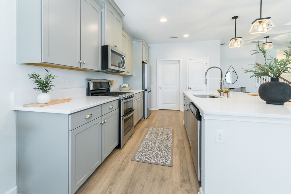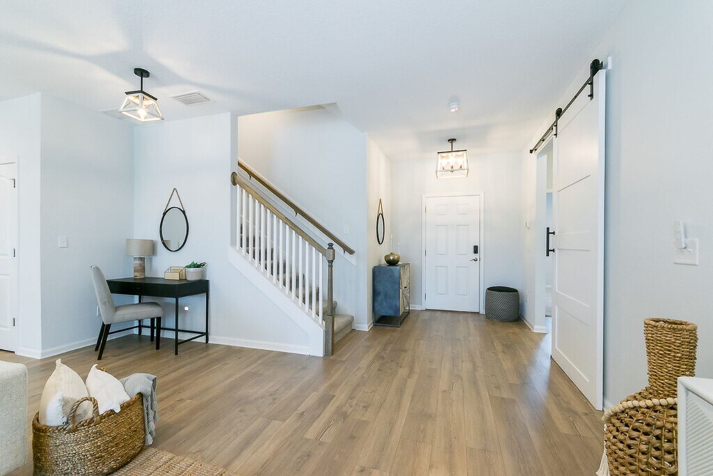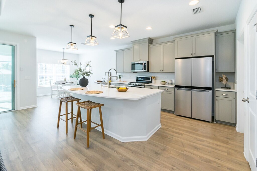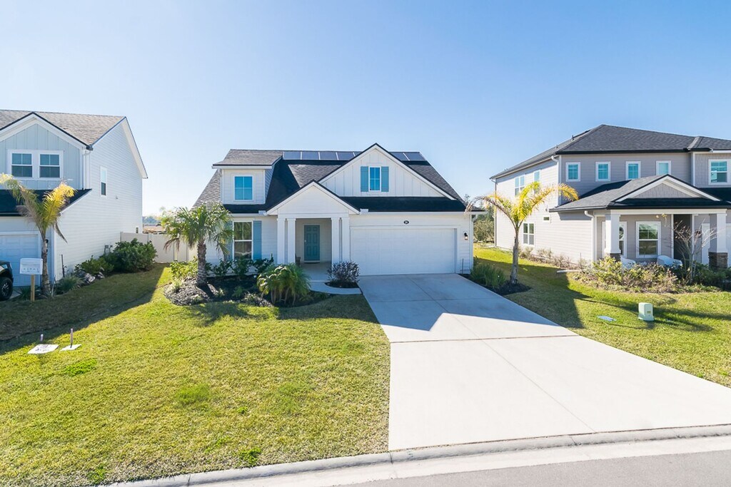 Welcome to your dream rental — a stunning, high-end 4-bedroom, 3-bathroom home nestled in one of St. Johns County's most prestigious, amenity-rich communities. Built in 2022, this thoughtfully designed residence offers the perfect blend of modern elegance, energy efficiency, and resort-style living. Step inside to discover luxury plank flooring throughout the main living areas, complemented by plush, brand-new carpeting in the bedrooms for ultimate comfort. The spacious upstairs suite features a private bathroom, ideal for guests or a private retreat. The heart of this home is the beautifully landscaped backyard oasis. Enjoy year-round relaxation in the in-ground heated pool with a sun shelf, surrounded by a screened enclosure and an elegant pavered deck — perfect for entertaining or quiet evenings at home. The backyard also boasts fruit trees and a lush bamboo privacy fence, creating a serene and private atmosphere. Eco-conscious tenants will appreciate the energy-efficient solar system, significantly reducing monthly utility costs, and the full-house water softening system, adding extra comfort to your daily routine. Located in a vibrant master-planned community, residents enjoy exclusive access to state-of-the-art amenities including: A tranquil 43-acre lake Modern fitness center & culinary studio Zero-entry resort-style pool, splash park & water slides Pickleball and tennis courts Sand beach, fire pit & scenic walking trails Families will love the home's location within top-rated St. Johns County schools, including a brand new K-8 academy just a short walk away. This home offers the rare opportunity to enjoy luxury, sustainability, and community all in one. Schedule your private tour today and experience elevated living at its finest!