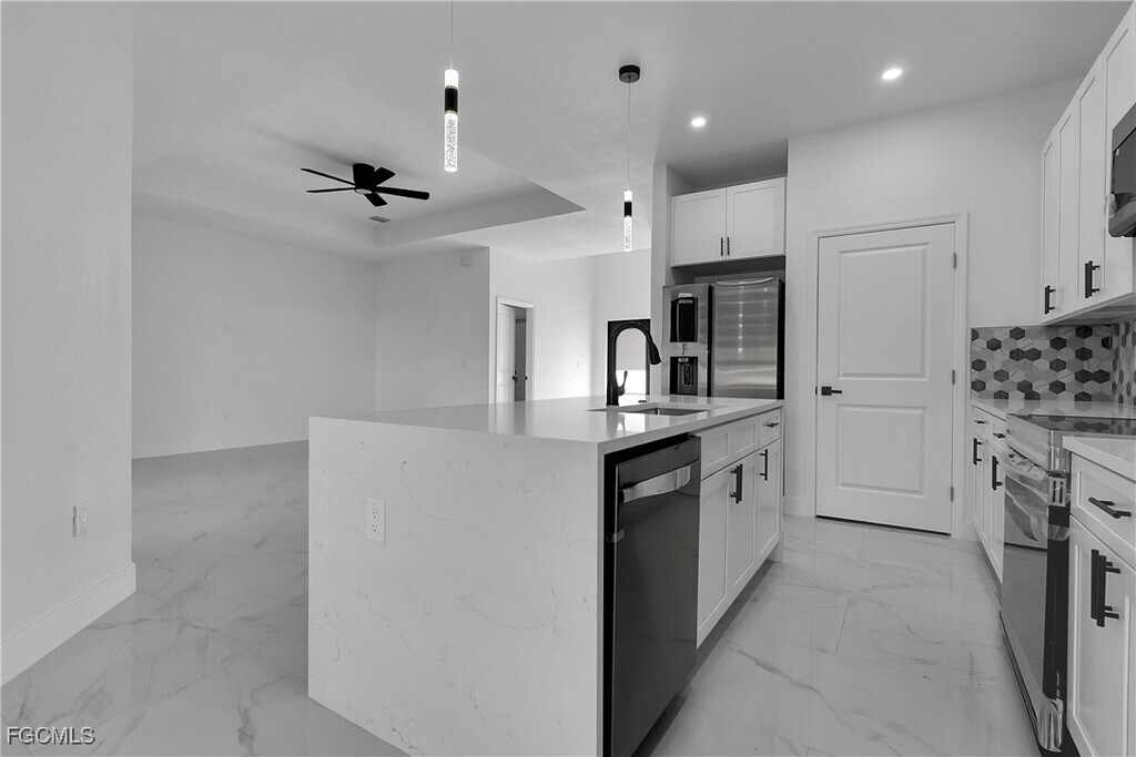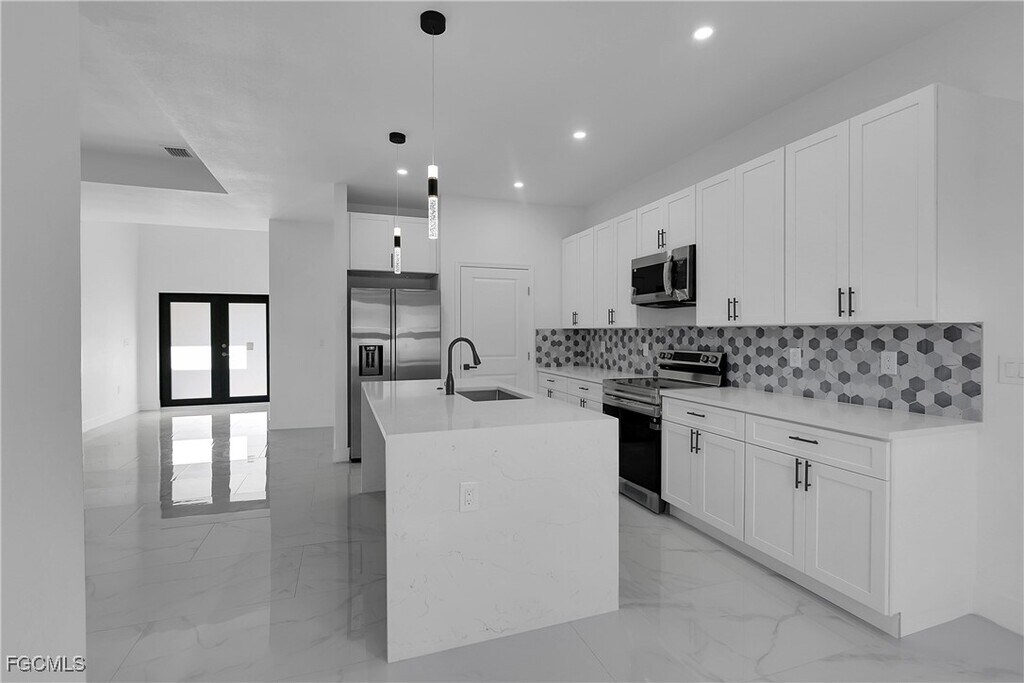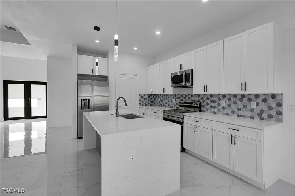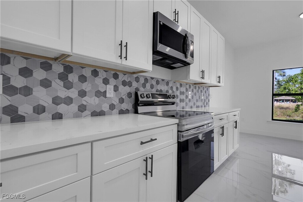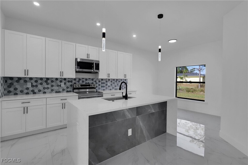 Fast approval - move-in within 3 days. Modern New Construction home,never lived in featuring 4 bedrooms,2 baths,open floor plan. Kitchen offers a large island,quartz countertops,and brand new stainless-steel appliances. Interior is finished with porcelain tile throughout,creating a sleek and cohesive modern look. Bathrooms feature contemporary style mirrors and upgraded finishes. Home is equipped with impact resistance windows and doors for safety and energy efficiency,plus a full irrigation system for easy lawn maintenance. Dedicated laundry room includes a new washer and dryer. Additional features include a 2 car garage and spacious backyard,for outdoor enjoyment. This home is move in ready!